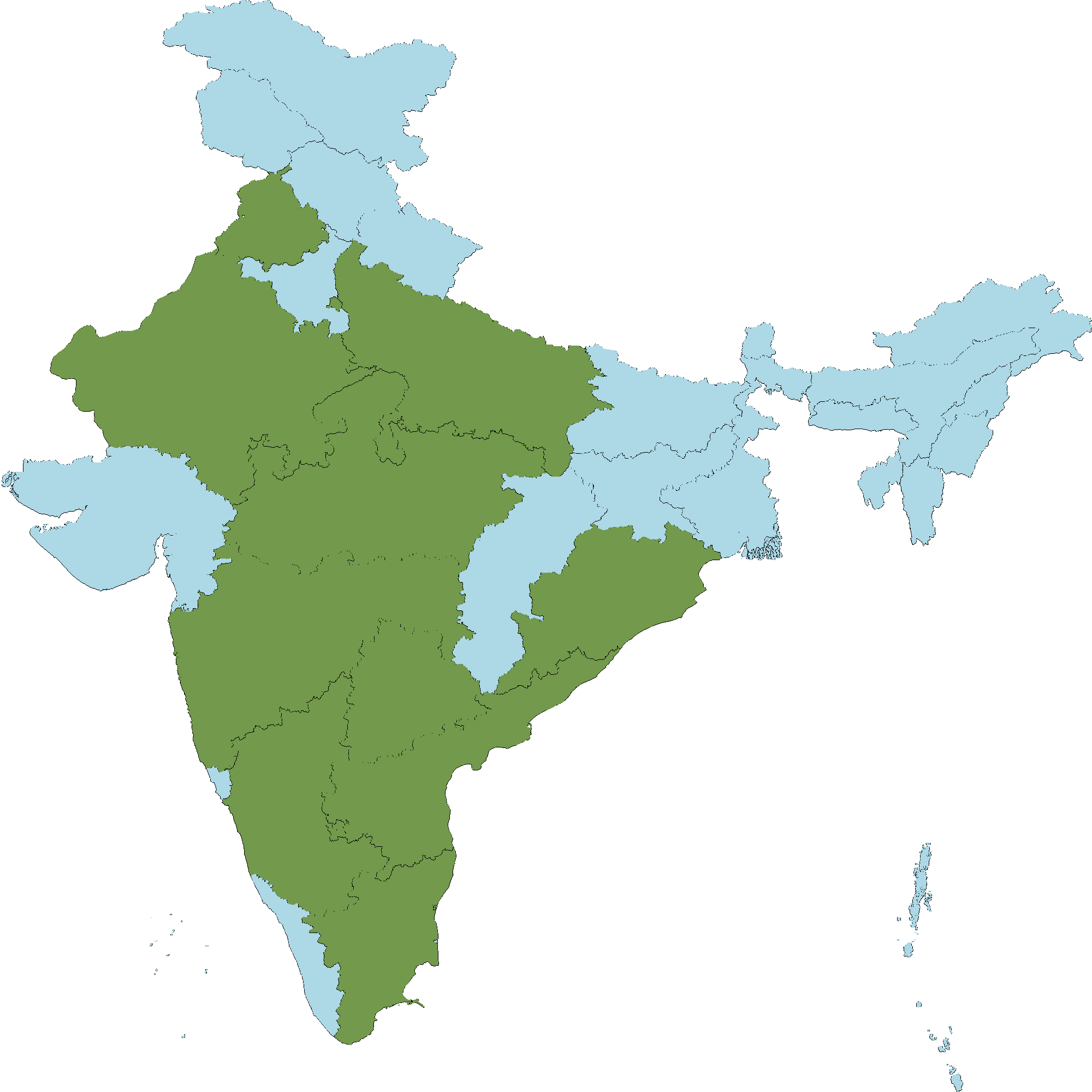 - Andhra Pradesh : Anantapur district, Chittoor district, Kadapa district, East Godavari district, Guntur district, Krishna district, Kurnool district, Nellore district, Prakasam district, Srikakulam district, Vishakapatnam district, Vizianagaram district, West Godavari district