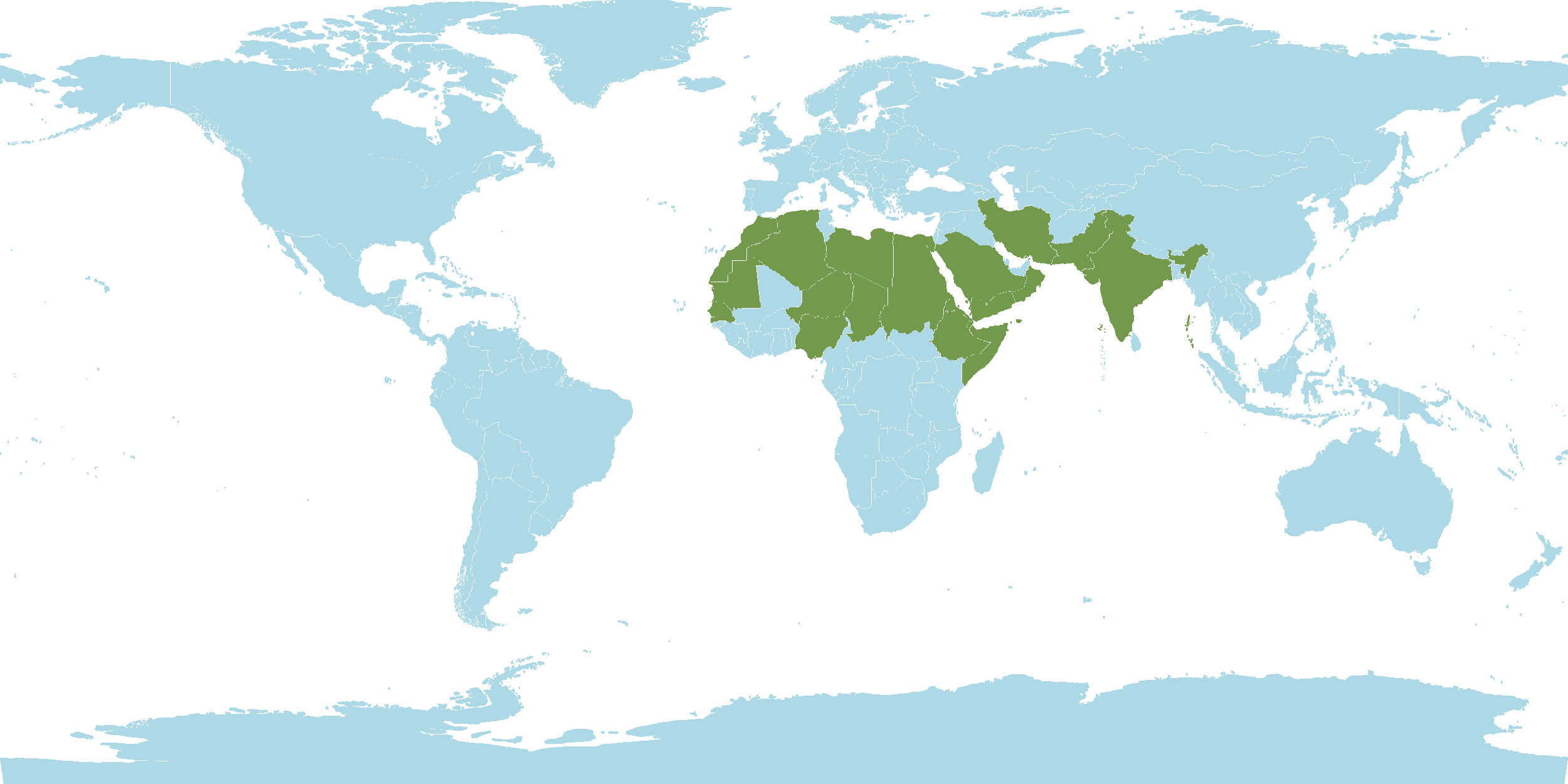 - Native : Algeria, Andaman and Nicobar Isands, Chad, Djibouti, Egypt, Eritrea, Ethiopia, India, Iran, Libya, Mauritania, Morocco, Niger, Nigeria, Oman, Pakistan, Palestine, Saudi Arabia, Senegal, Sinai, Socotra, Somalia, Sudan, Western Sahara, Yemen