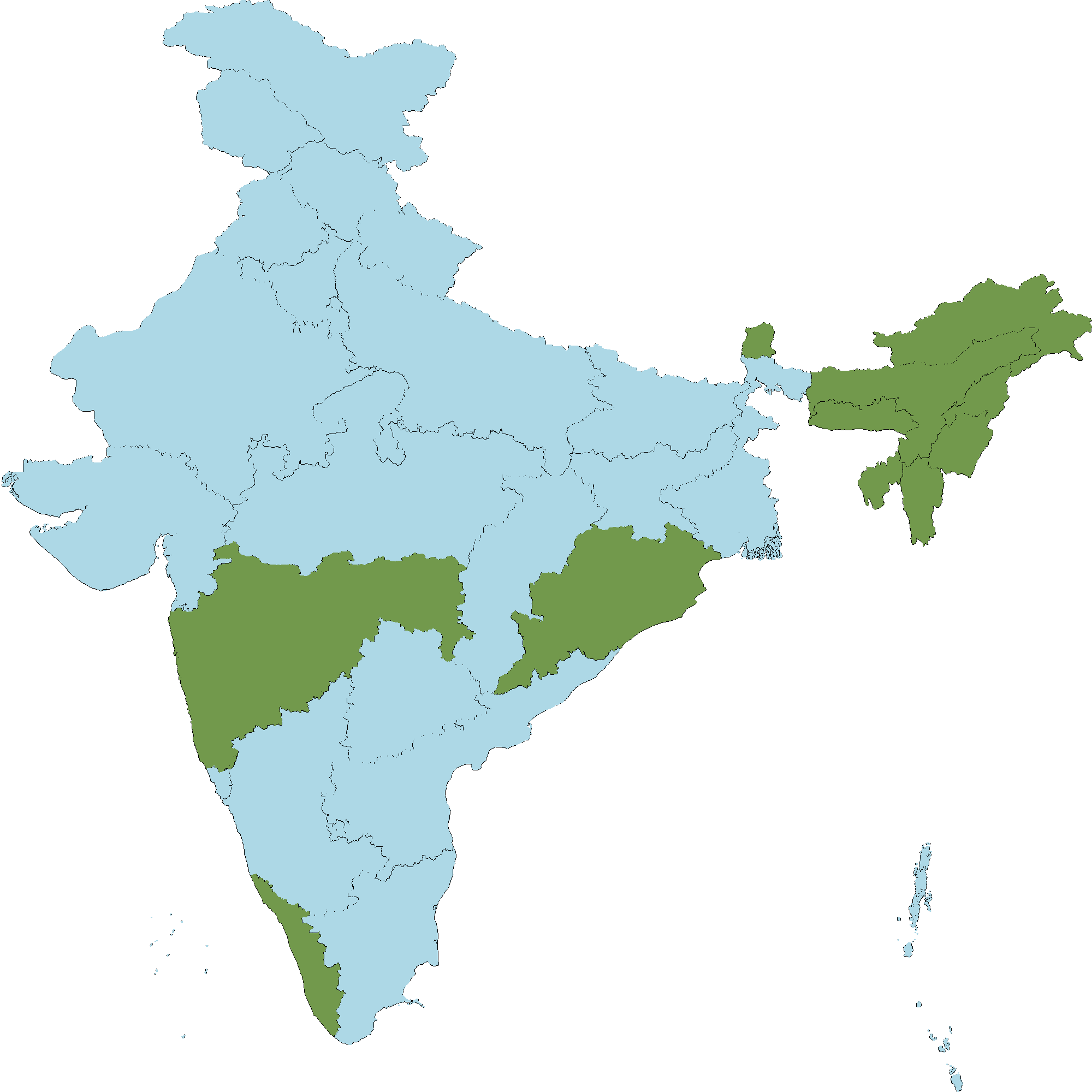 - Kerala : Palakkad district, Idukki district, Pathanamthitta district, Thiruvananthapuram district