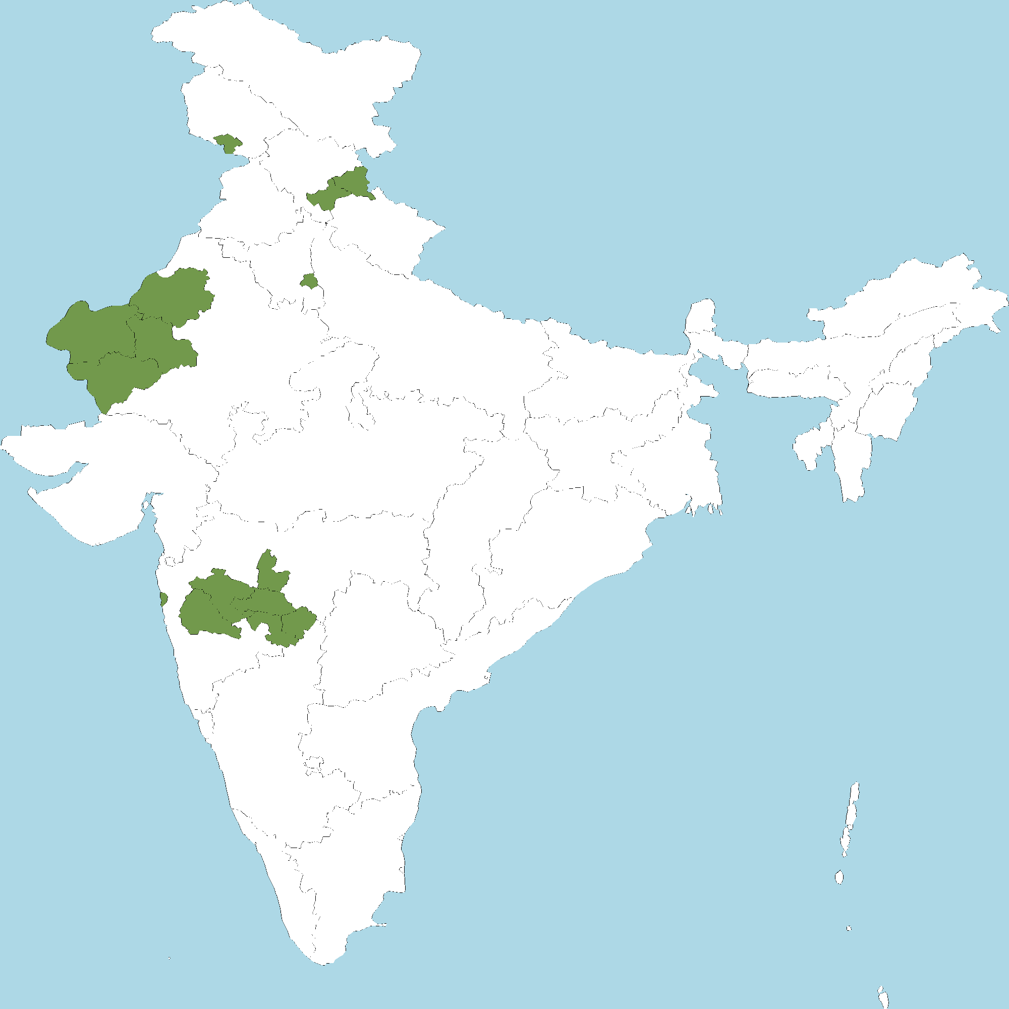 - Rajasthan : Jaisalmer district, Barmer district, Bikaner district, Jodhpur district