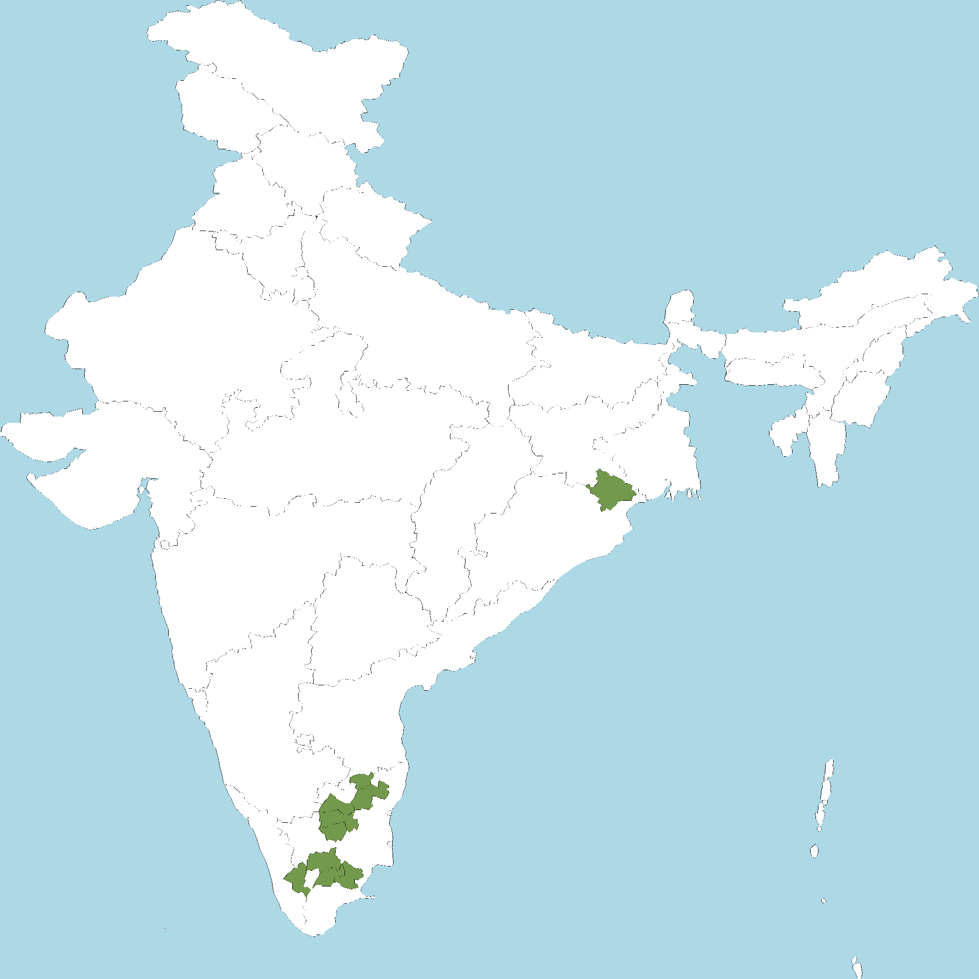 - Tamil Nadu : Alagar Hills (Madurai district), Kolli Hills (Namakkal district), Shevaroy Hills, Kalrayan Hills, Bodamalai Hills (Salem district), Pachamalai Hills (Tiruchirapalli district), Chitteri Hills, Yelagiri Hills (Vellore district), Sirumalai Hills (Dindigul district), Piranmalai Hills (Sivaganga district), Theerthamalai Hills, Dharmapuri Hills (Dharmapuri district), Gingee Hill (Villipuram district), Javadu Hills (Tiruvannamalai district)