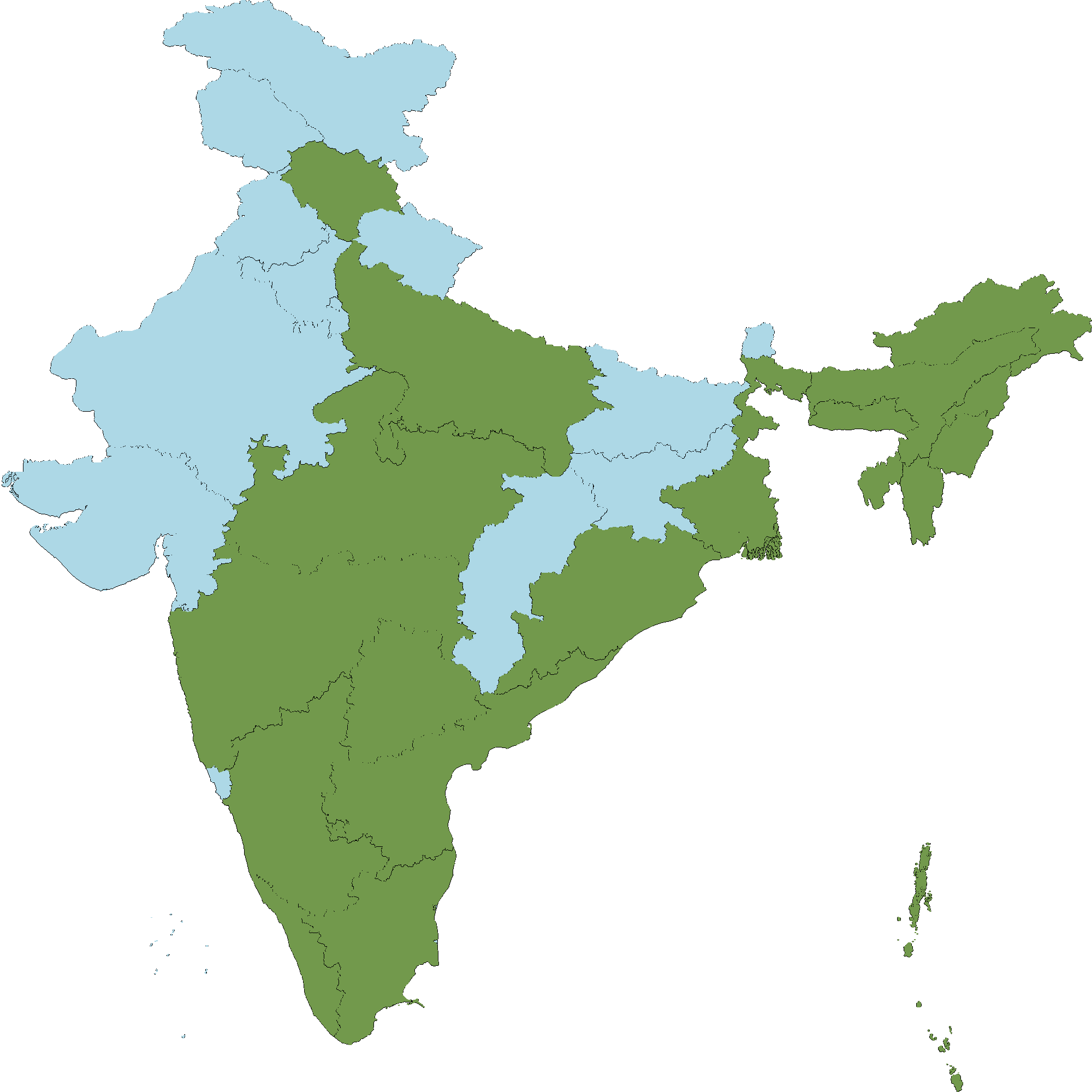 - Tamil Nadu : Coimbatore district, Dharmapuri district, Dindigul district, Erode district, Kanyakumari district, Namakkal district, The Nilgiri district, Salem district, Theni district, Tirunelveli district, Tiruvannamalai district, Vellore district, Villipuram district, Virudhunagar district
