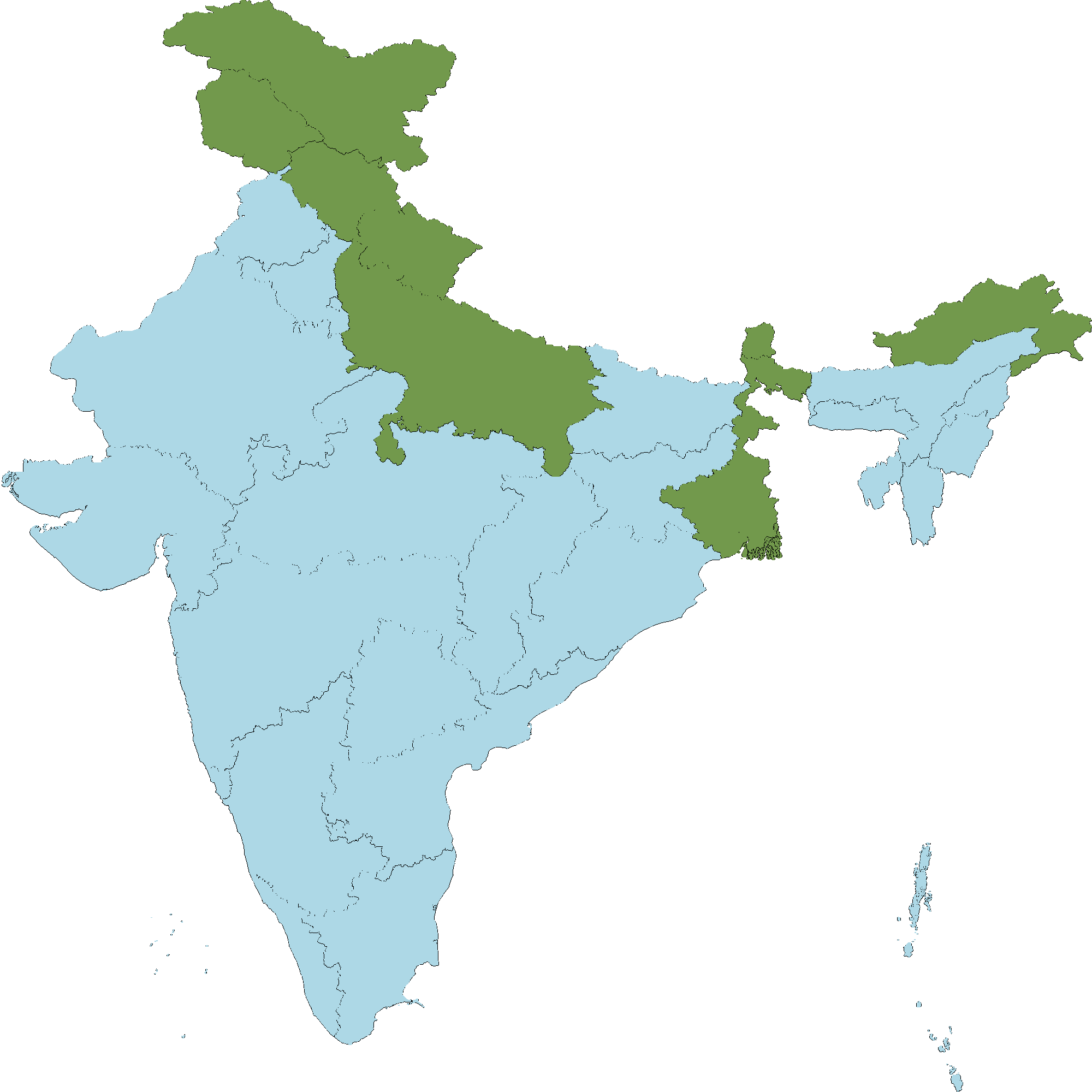 - Himachal Pradesh : Chamba district, Kinnaur district, Kullu district, Shimla district, Lahaul & Spiti district