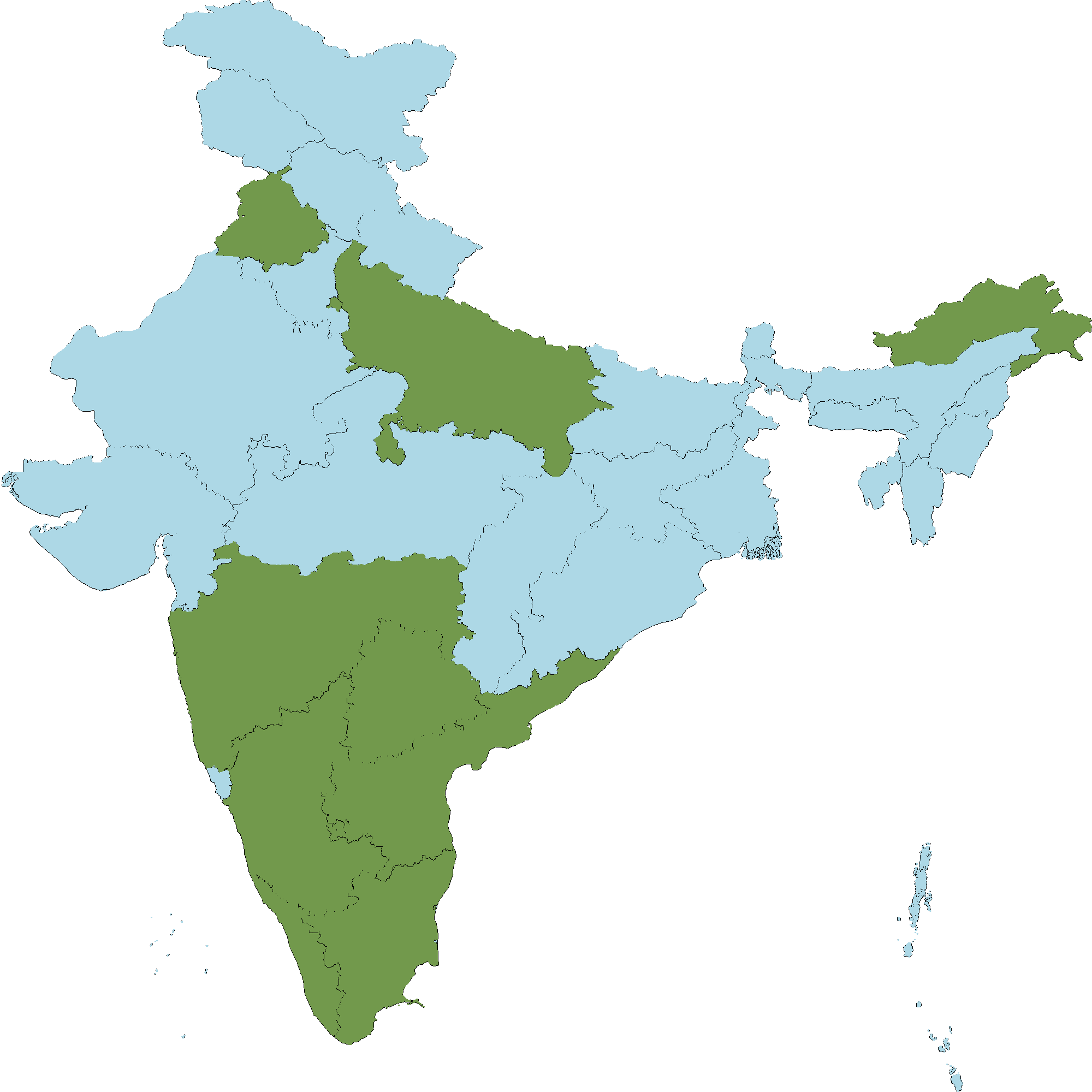 - Andhra Pradesh : KLM, Vishakapatnam district, Vizianagaram district, East Godavari district, West Godavari district, Krishna district, Guntur district, Prakasam district, Kurnool district, Nellore district, Kadapa district, Anantapur district, Chittoor district