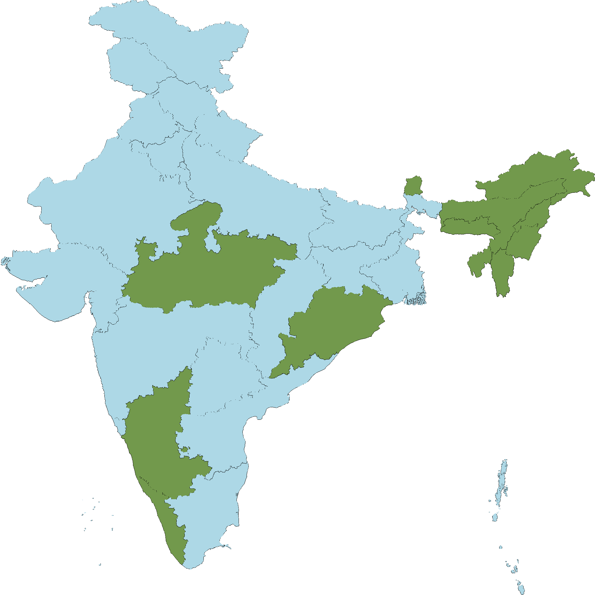 - Karnataka : Chikkamagaluru district, Dakshina Kannada district, Udupi district