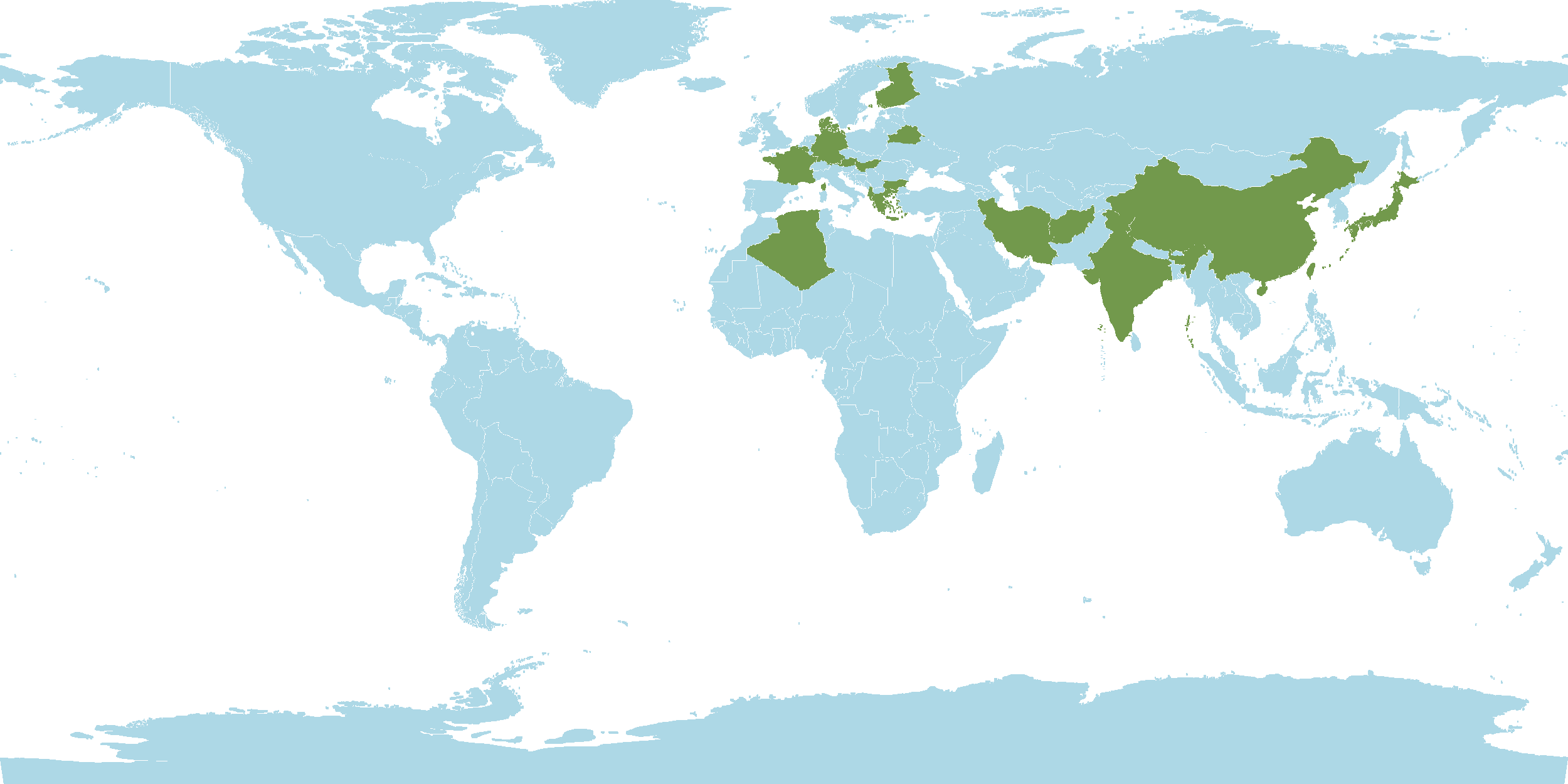 - World Distribution : Europe, mediterranean to Central China, Taiwan, Japan