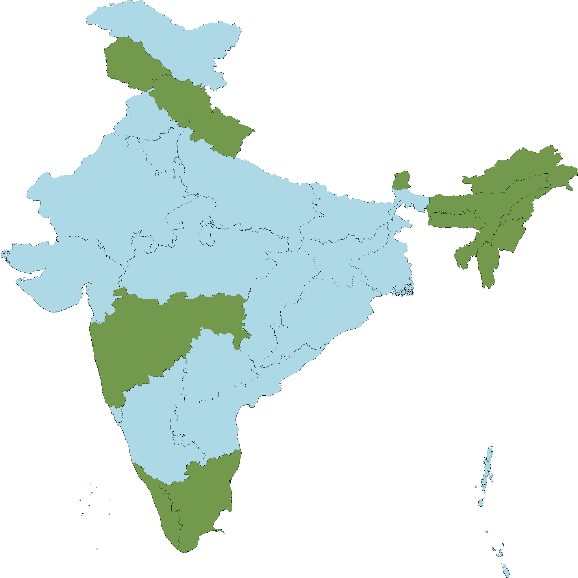 - Himachal Pradesh : Kinnaur district, Kullu district, Lahaul & Spiti district, Shimla district, Sirmaur district