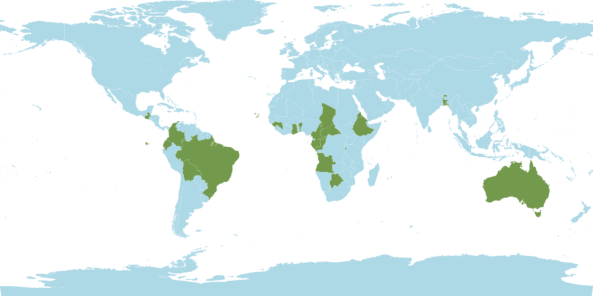 - Native : Angola, Arizona, Aruba, Australia, Bangladesh, Benin, Bhutan, Bolivia, Botswana, Brazil, Burkina, Burundi, Cameroon, Cape Verde, Central African Republic, Chad, Colombia, Congo, Ecuador, Eritrea, Ethiopia, Gabon, Gambia, Ghana, Guatemala, Guinea, Guinea-B