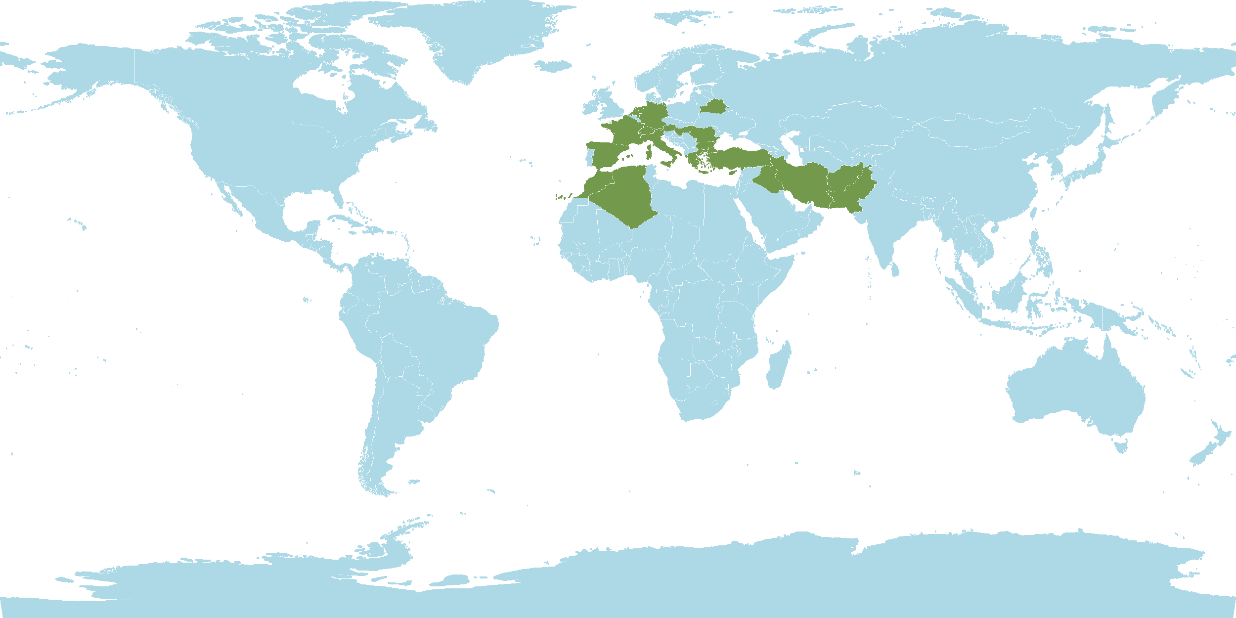 - Native : Afghanistan, Algeria, Austria, Belarus, Bulgaria, Corse, Cyprus, France, Germany, Greece, Hungary, Iran, Iraq, Italy, Krym, Morocco, Pakistan, Palestine, Romania, South European Russi, Spain, Switzerland, Tadzhikistan, Turkey, Turkey-in-Europe, Turkmenist