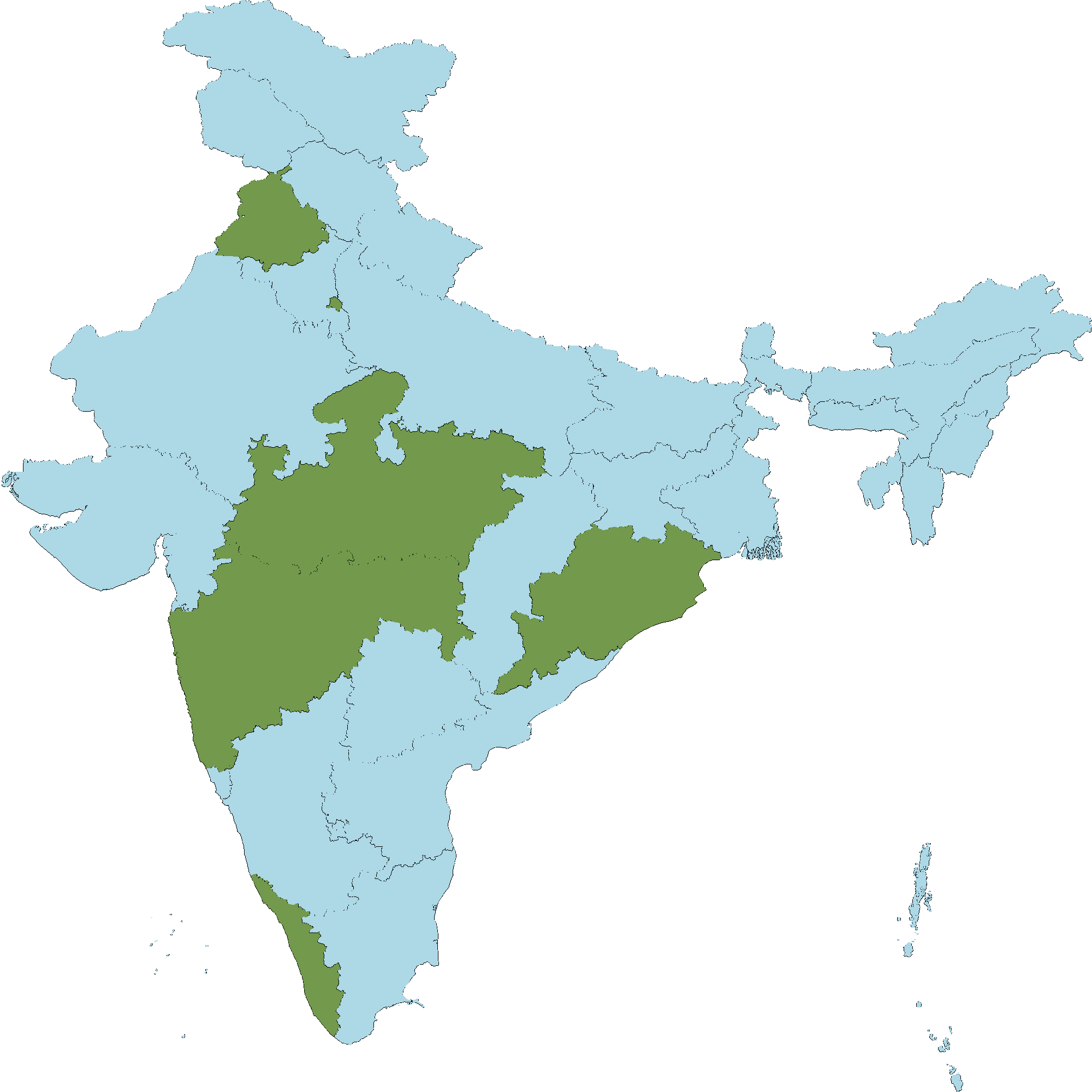 • Maharashtra : Akola district, Amravati district, Aurangabad district, Chandrapur district, Dhule district, Jalgaon district, Nanded district, Nashik district, Osmanabad district, Pune district, Thane district, Yavatmal district