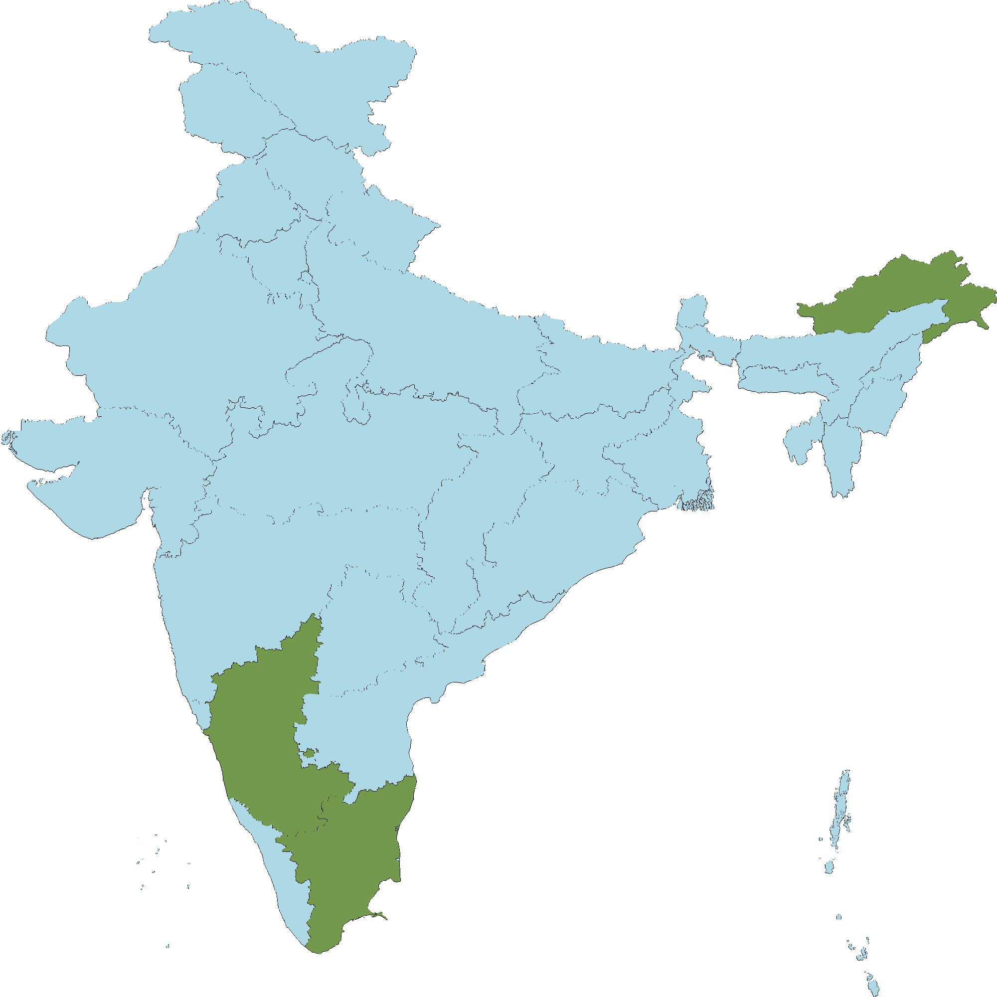- Tamil Nadu : Coimbatore district, Namakkal district, The Nilgiri district