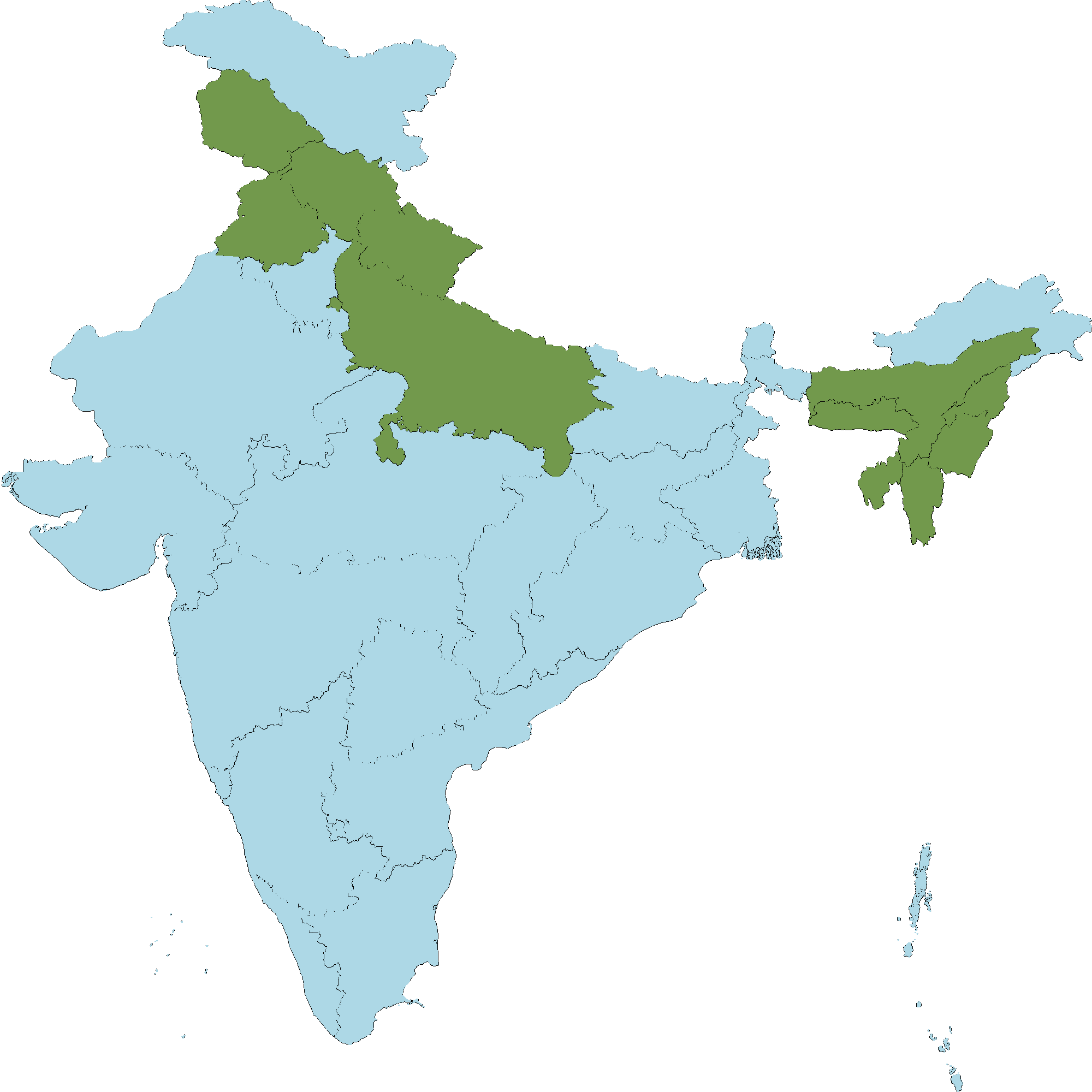 - Himachal Pradesh : Kangra district, Lahaul & Spiti district, Shimla district