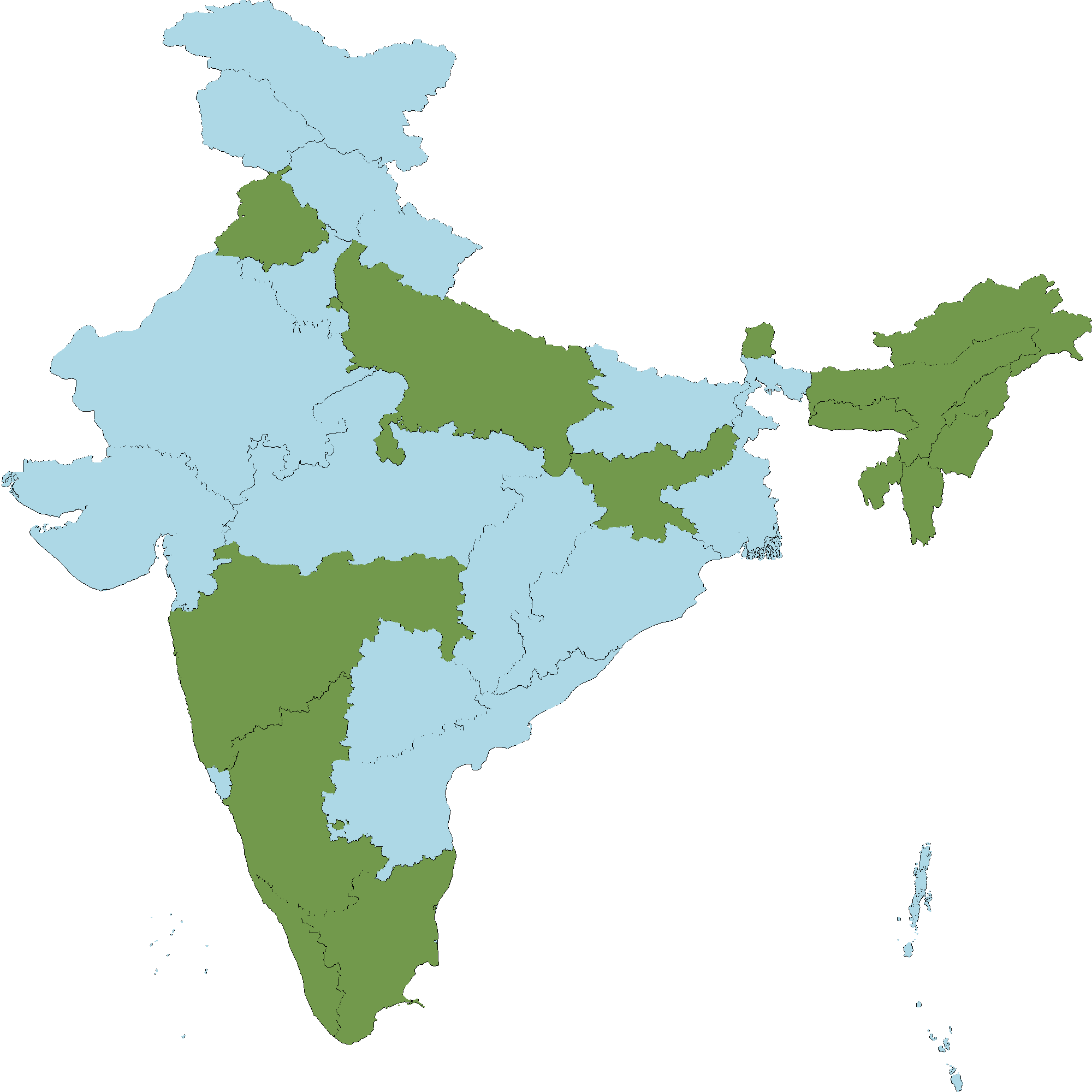 - Tamil Nadu : Coimbatore district, Dindigul district, Kanyakumari district, The Nilgiri district, Salem district, Theni district