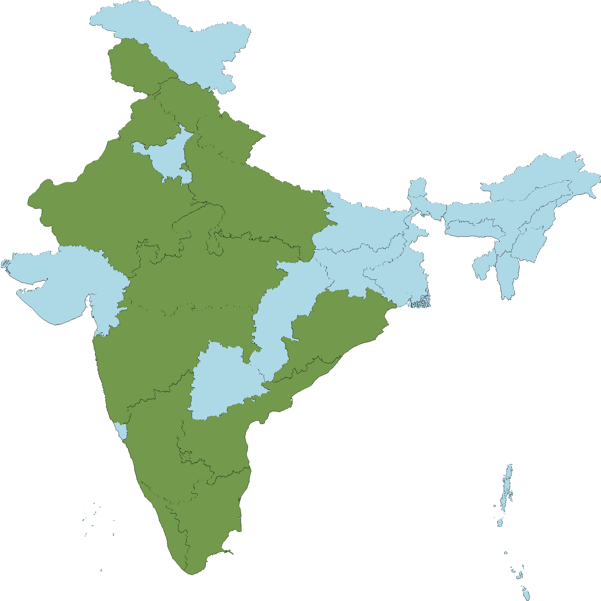 - Karnataka : Belagavi district, Ballari district, Bidar district, Davanagare district, Dharwad district, Kalaburagi (Gulbarga) district, Hassan district, Kodagu (Coorg) district, Mysuru district, Raichur district, Uttara Kannada district