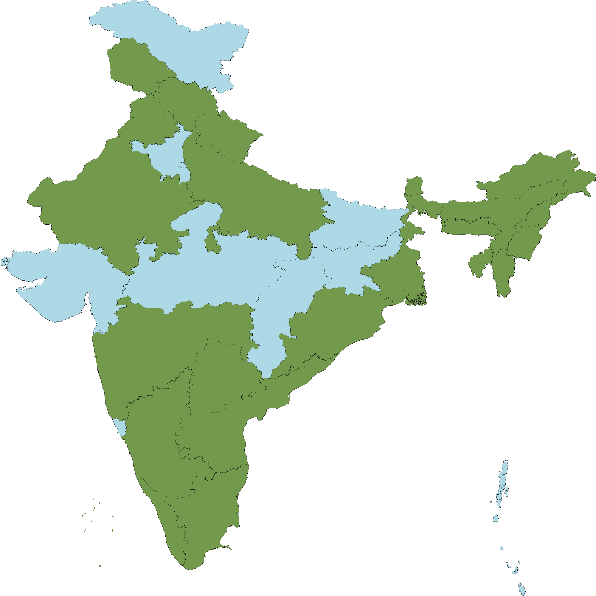 - Odisha : Angul district, Balasore district, Bargarh district, Bolangir district, Boudh district, Cuttack district, Deogarh district, Dhenkanal district, Gajapati district, Ganjam district, Kalhandi district, Kandhamal district, Kendrapara district, Keonjhar district, Khurda district, Koraput district, Malkangiri district, Mayurbhanj district, Puri district, Rayagada district,Sambalpur district, Sundergarh district