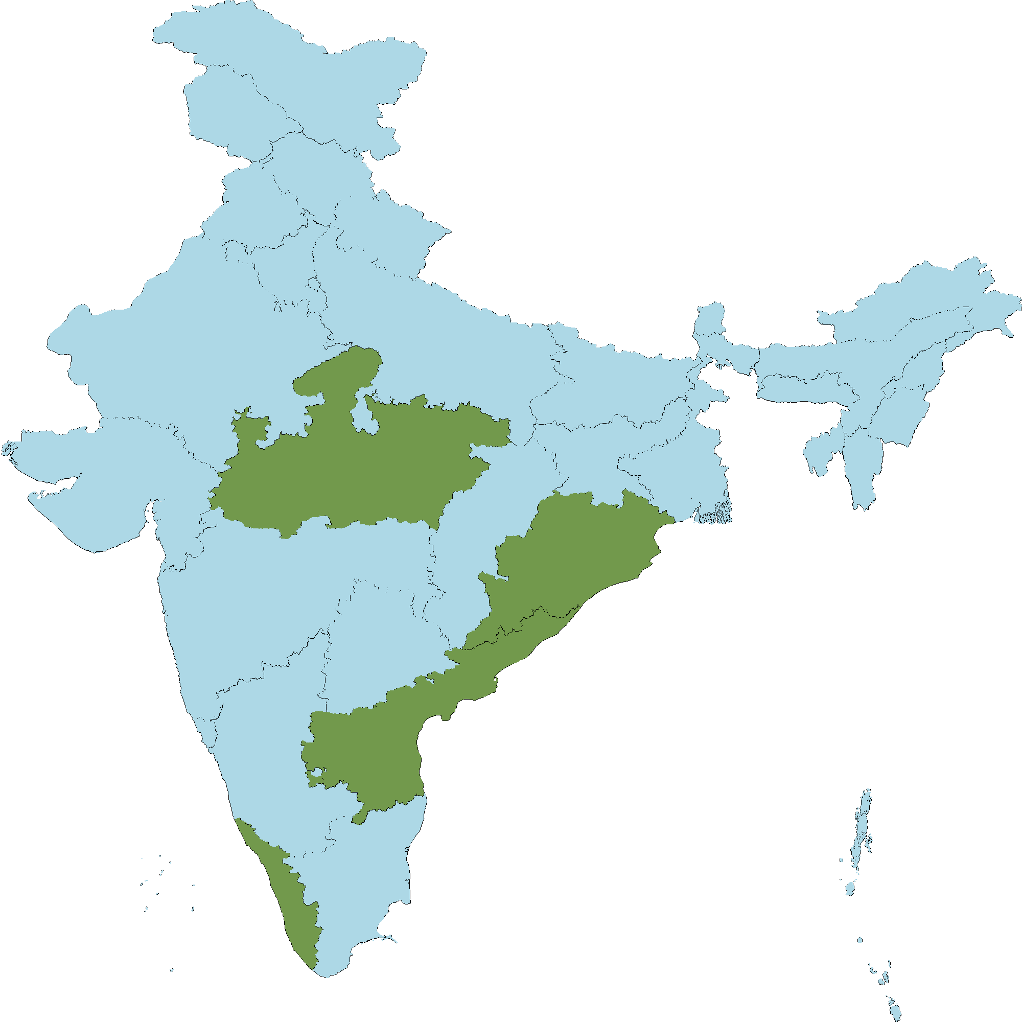 • Kerala : All districts of Kerala