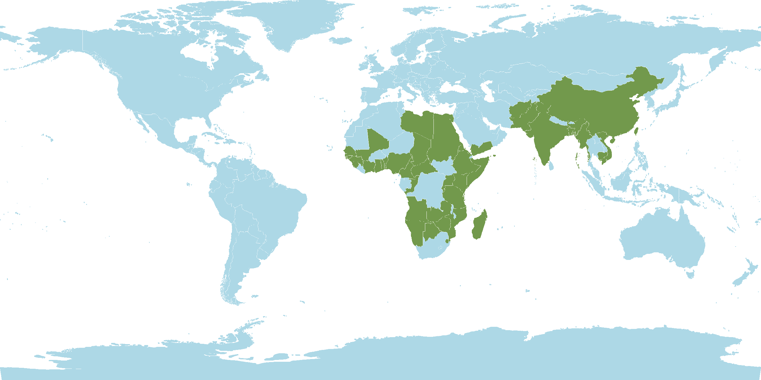 - Native : Afghanistan, Angola, Bangladesh, Benin, Botswana, Burundi, Cambodia, Cameroon, Central African Republic, Chad, China, Congo, Egypt, Eritrea, Ethiopia, Ghana, Guinea, Guinea-Bissau, India, Ivory Coast, Kenya, KwaZulu-Natal, Libya, Madagascar, Malaya, Mali,