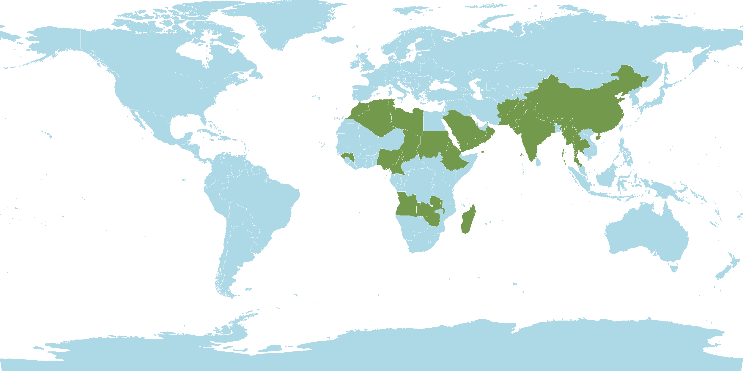 - Native : Afghanistan, Algeria, Angola, Bhutan, Cameroon, Chad, China, Djibouti, Eritrea, Ethiopia, Guinea, Hainan, India, Libya, Madagascar, Malawi, Morocco, Myanmar, Nepal, Nigeria, Oman, Pakistan, Palestine, Saudi Arabia, Sinai, Sudan, Thailand, Tibet, Tunisia,