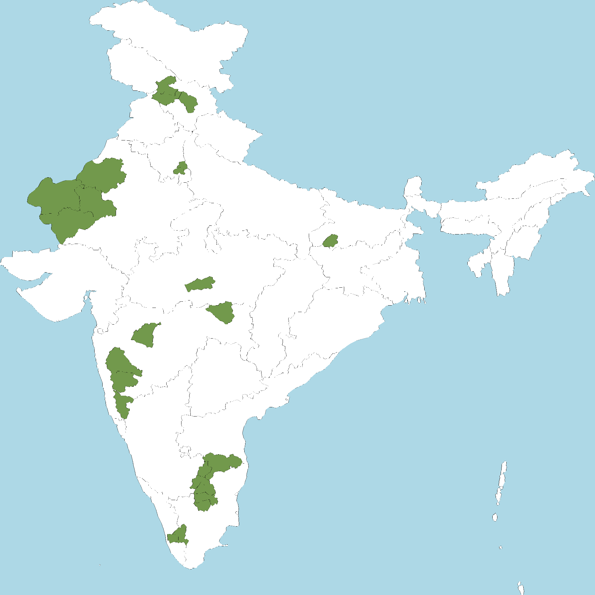 - Rajasthan : Jaisalmer district, Barmer district, Bikaner district, Jodhpur district