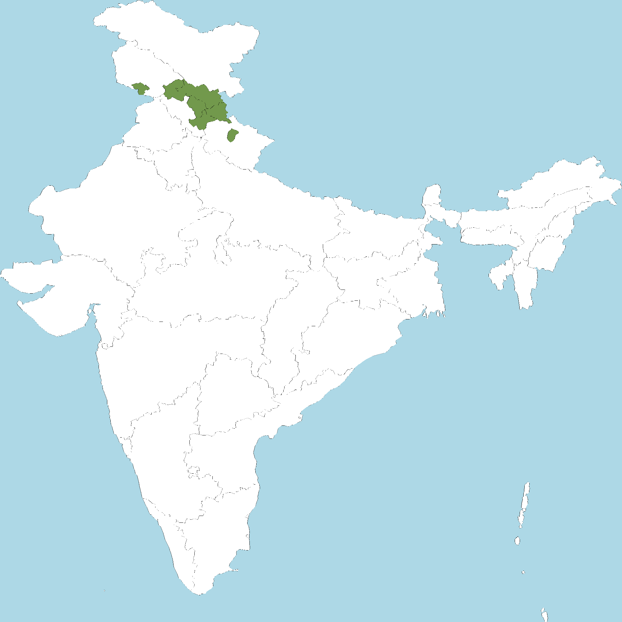 • Himachal Pradesh : Chamba district, Kinnaur district, Kullu district, Lahaul and Spiti district, Shimla district