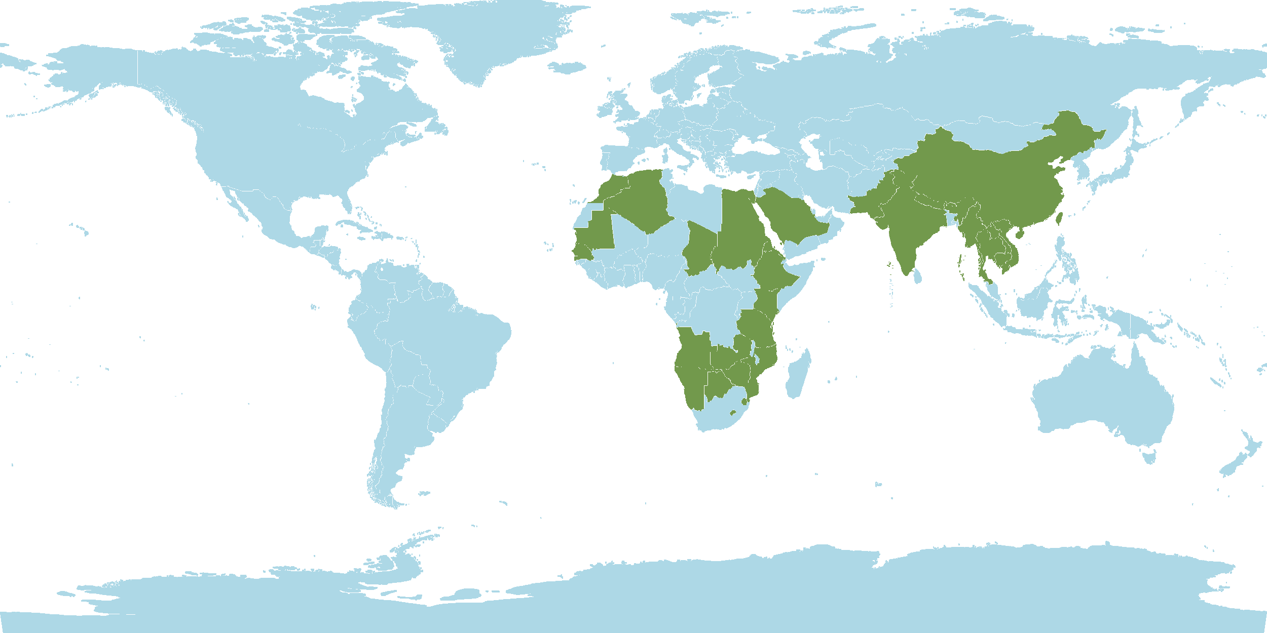 - World Distribution : Algeria, Angola, Bhutan, Botswana, Cambodia, Cape Provinces, Chad, China, Egypt, Eritrea, Ethiopia, Free State, India, Kenya, KwaZulu-Natal, Laos, Lesotho, Mauritania, Morocco, Mozambique, Myanmar, Namibia, Nepal, Northern Provinces, Pakistan, Palestine, Saudi Arabia, Senegal, Sinai, St.Helena, Sudan, Sumatera, Swaziland, Taiwan, Tanzania, Thailand, Vietnam, Zambia, Zimbabwe
