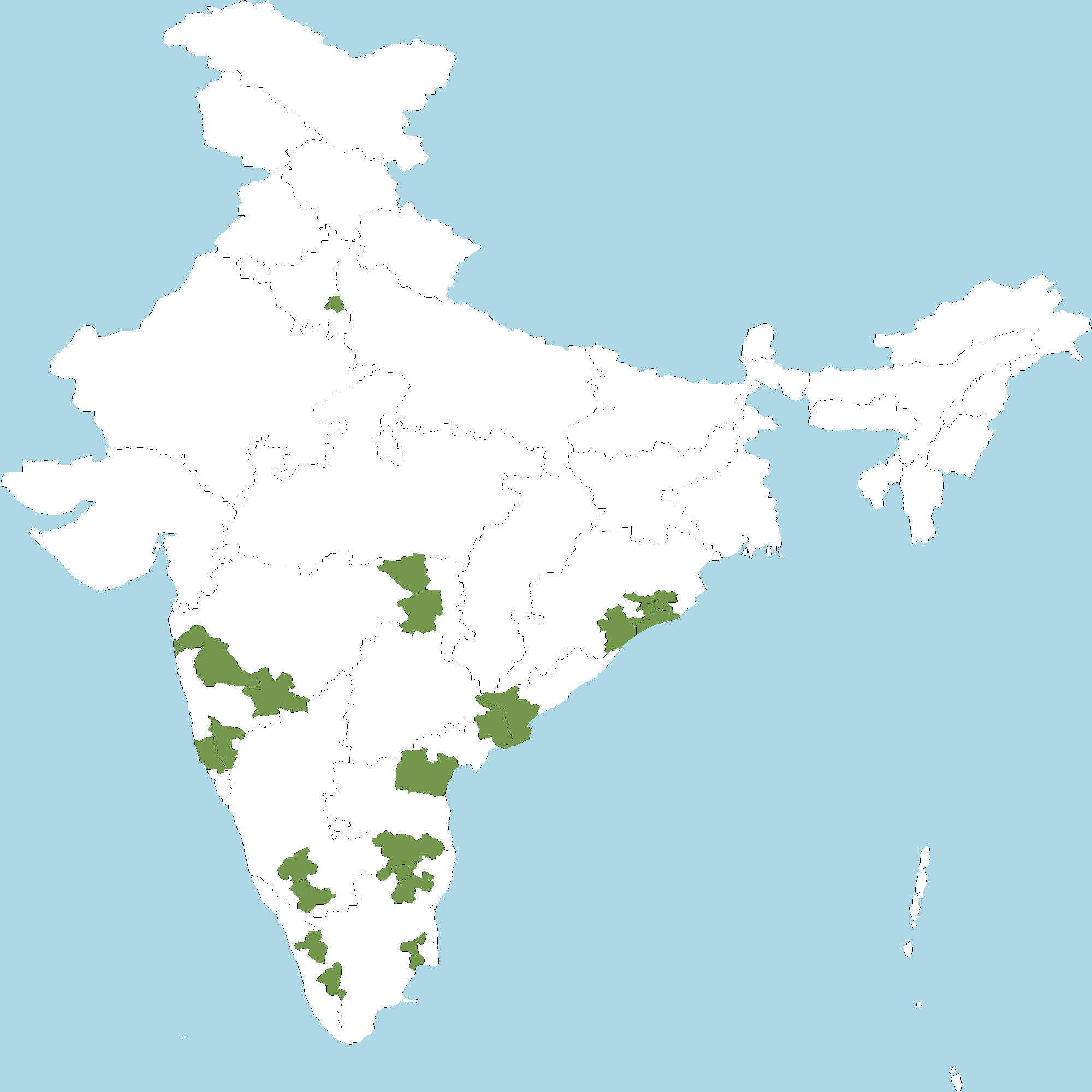 - Tamil Nadu : Vellore district, Tiruvannamalai district, Thanjavur district, The Nilgiri district