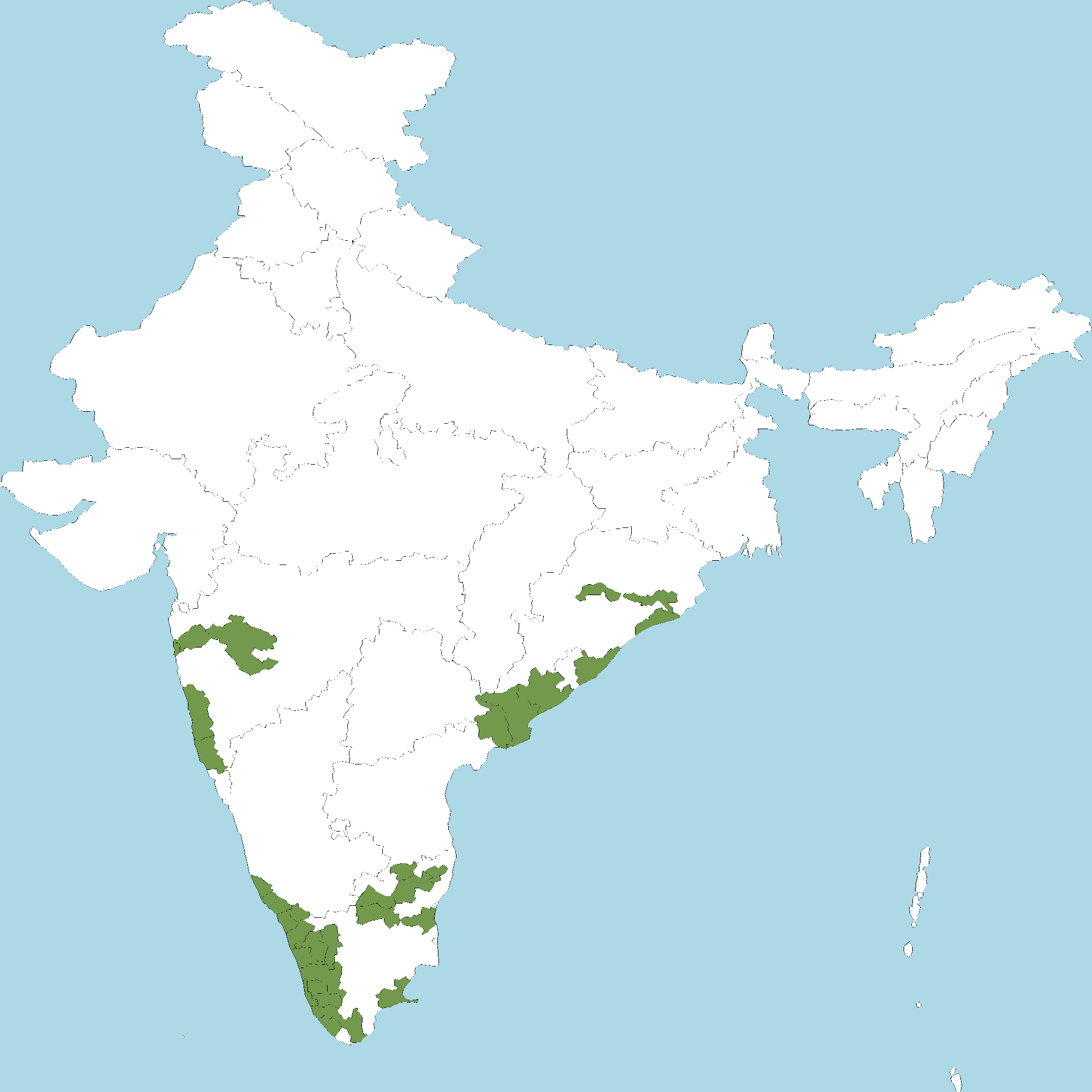 - Kerala : All districts of Kerala