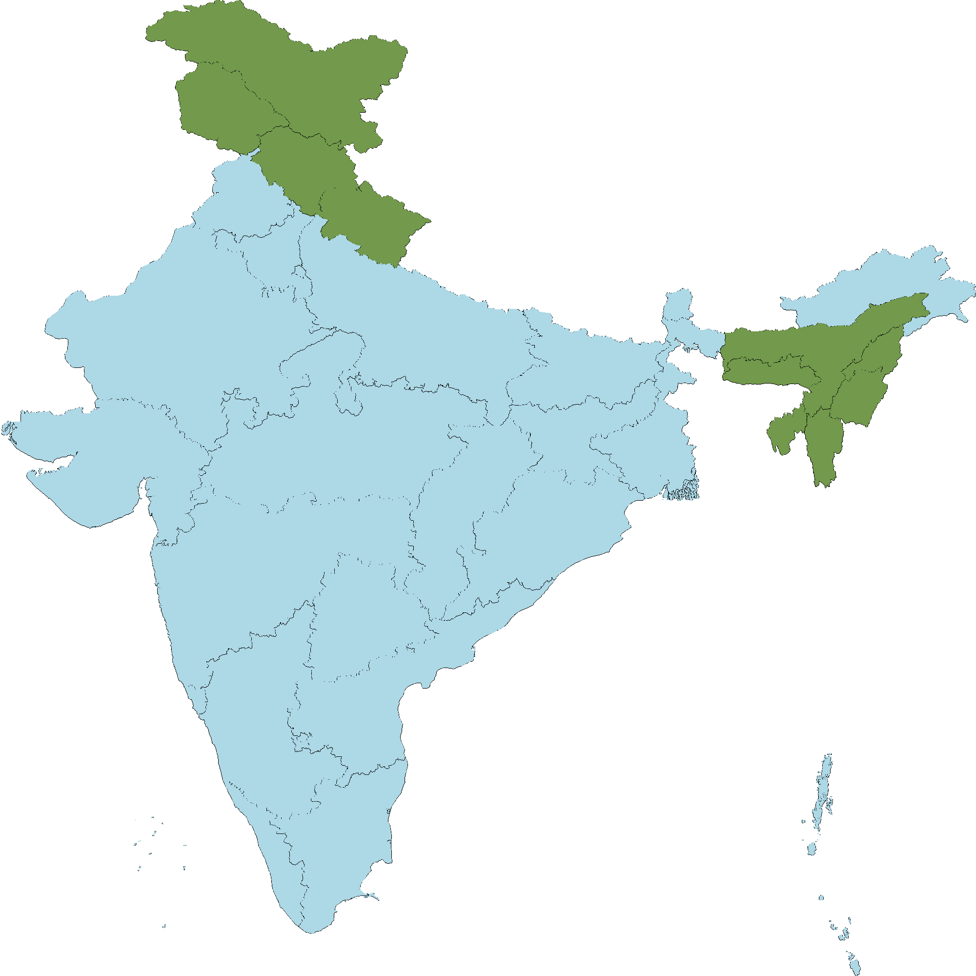 - Himachal Pradesh : Kinnaur district, Kullu district, Lahaul & Spiti district