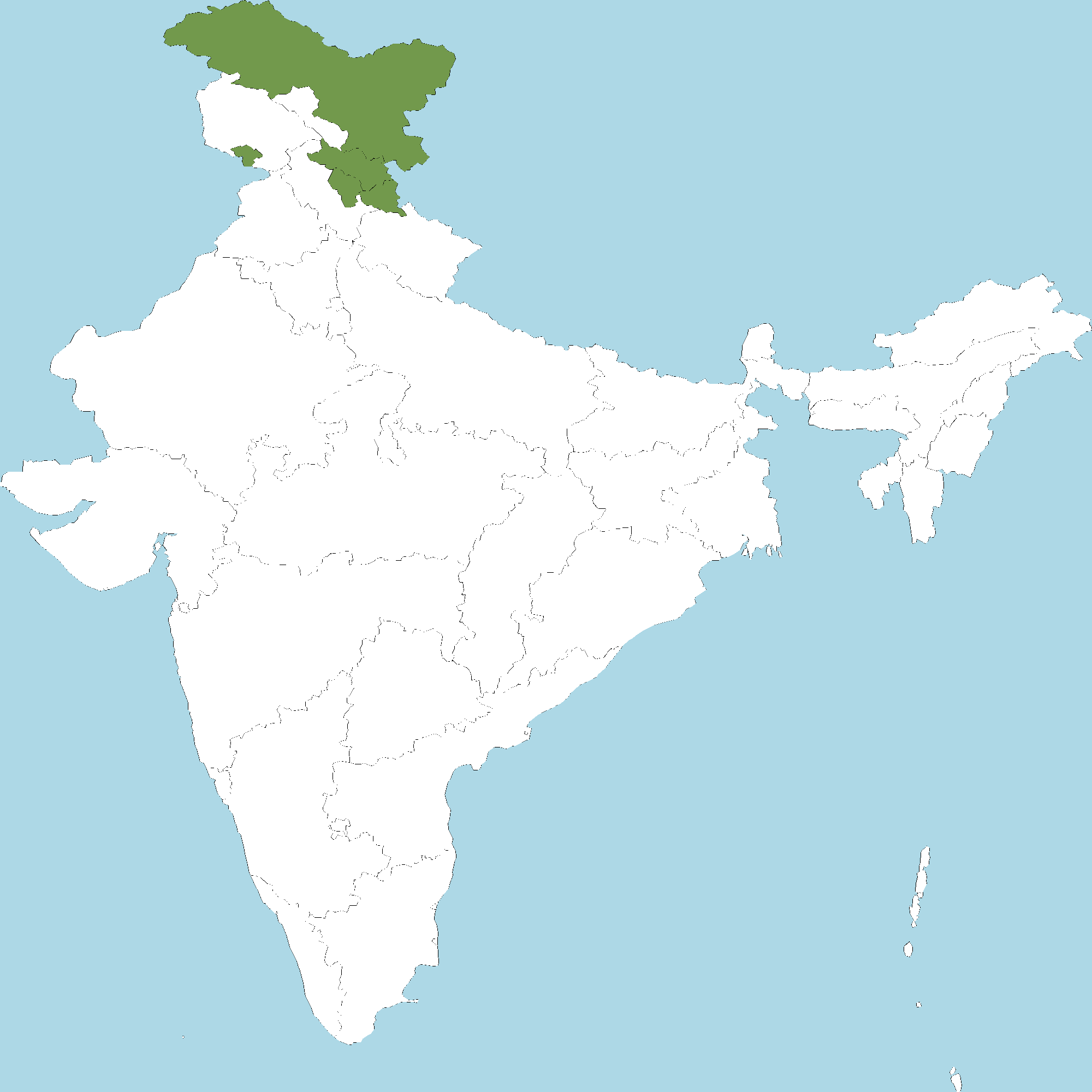 - Himachal Pradesh : Kinnaur district, Kullu district, Lahaul and Spiti district