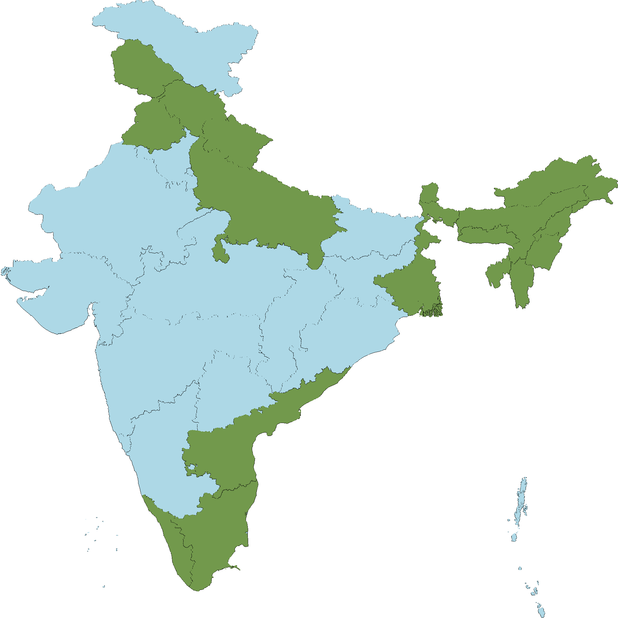 Andhra Pradesh : Vishakapatnam district, Srikakulam district  Kerala : Kannur district  Tamil Nadu : Salem district, The Nilgiri district  Uttarakhand : Uttarakhand  Sikkim : Sikkim  West Bengal : Coochbehar, Darjeeling, Jalpaiguri, Midnapur  Himachal Pradesh : Chamba district, Kangra district  Arunachal Pradesh : Arunachal Pradesh  Meghalaya : Meghalaya  Assam : Assam  Nagaland : Nagaland  Uttar Pradesh : Uttar Pradesh  Punjab : Punjab  Jammu and Kashmir : Jammu and Kashmir  Mizoram : Mizoram  Manipur : Manipur  Tripura : Tripura