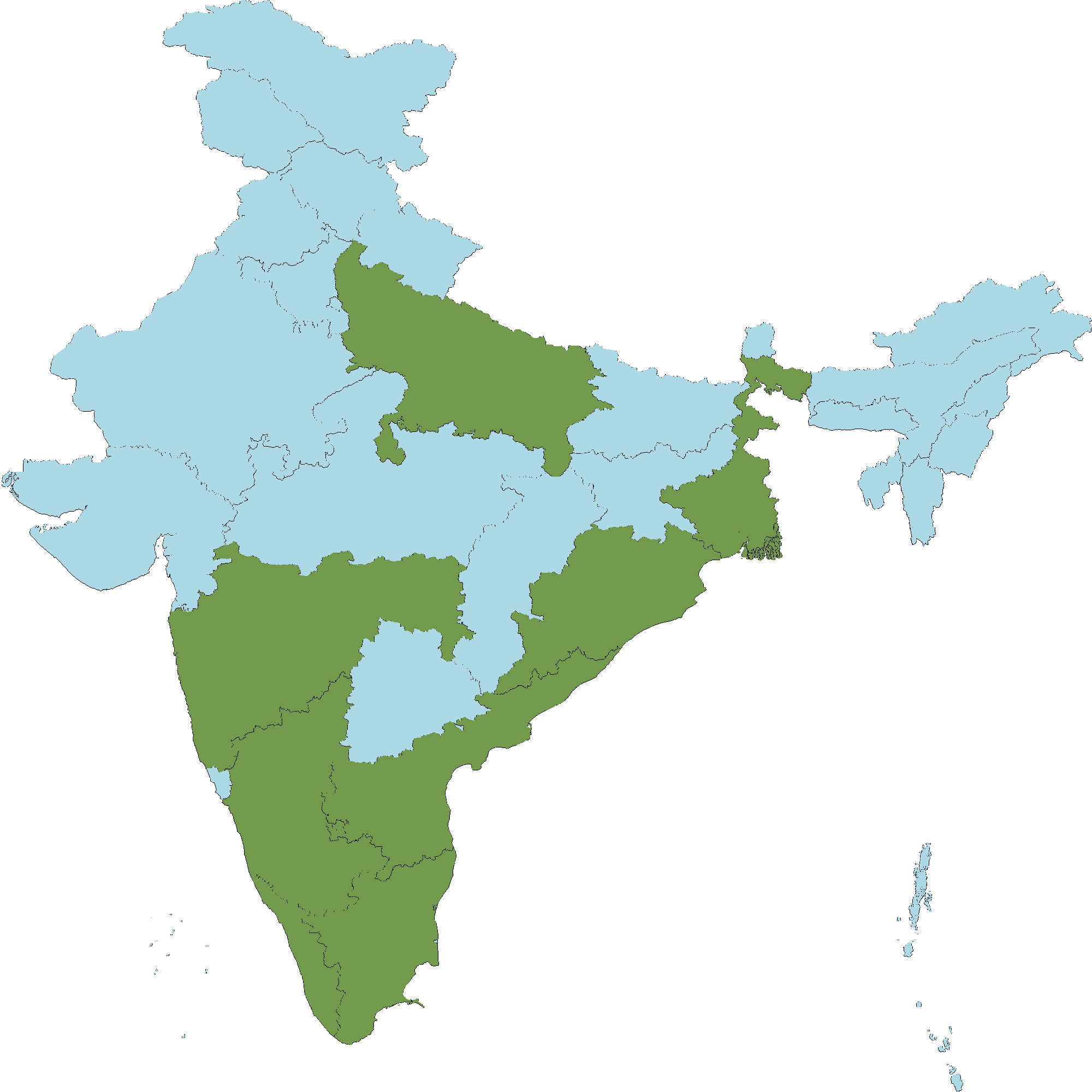 • Tamil Nadu : Kancheepuram (Changalpattu-CGP) district, Vellore district, Tiruvannamalai district, Salem district, Villipuram district, Cuddalore district, Tirunelveli district