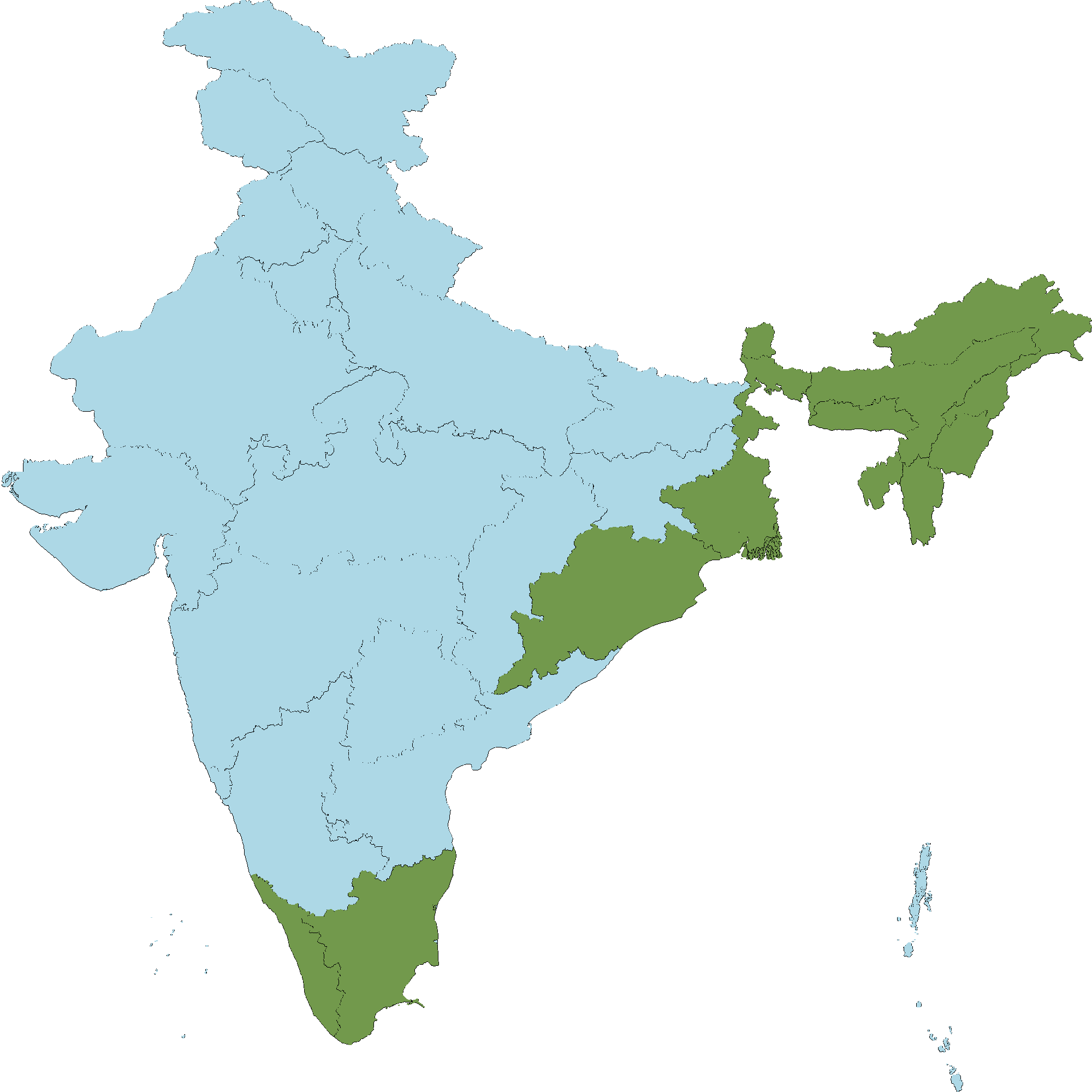 - Kerala : Wayanad district, Kozhikode district, Malappuram district, Palakkad district, Thrissur district, Idukki district, Pathanamthitta district, Kollam district