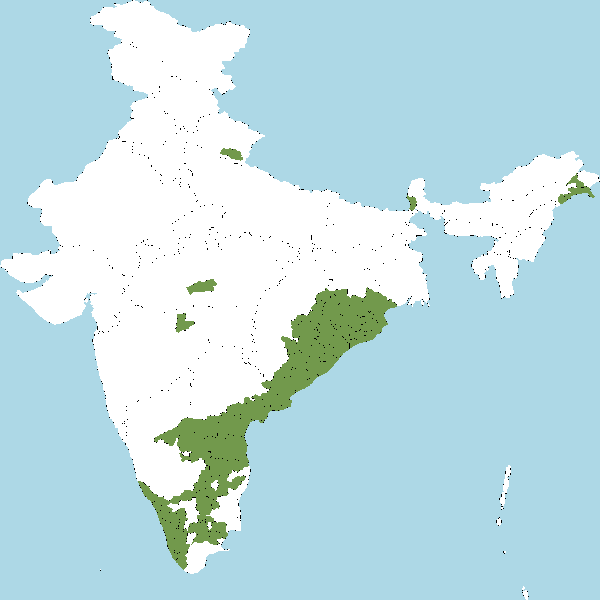 - Andhra Pradesh : Anantapur district, Chittoor district, Y.S.R. Kadapa district, East Godavari district, Guntur district, Krishna district, Kurnool district, S.P.S. Nellore district, Prakasam district, Srikakulam district, Visakhapatnam district, Vizianagaram district, West Godavari district