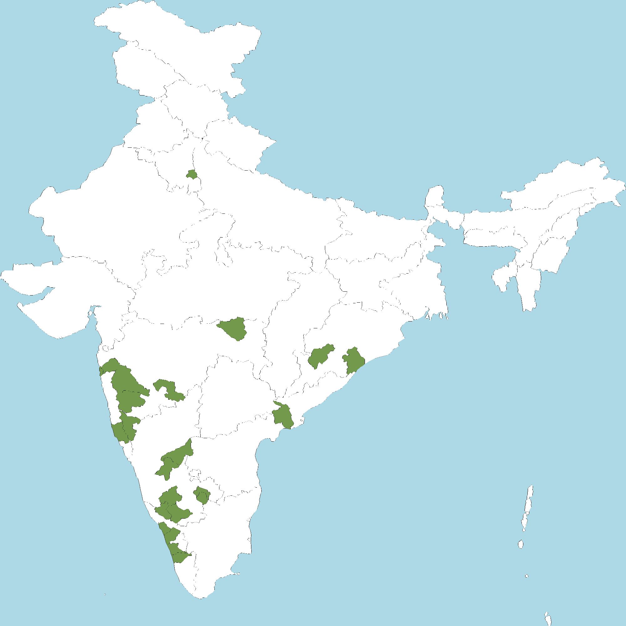 - Karnataka : Ballari district, Hassan district, Bengaluru Urban district, Bengaluru Rural district, Mysuru district, Kodagu (Coorg) district, Davanagere district