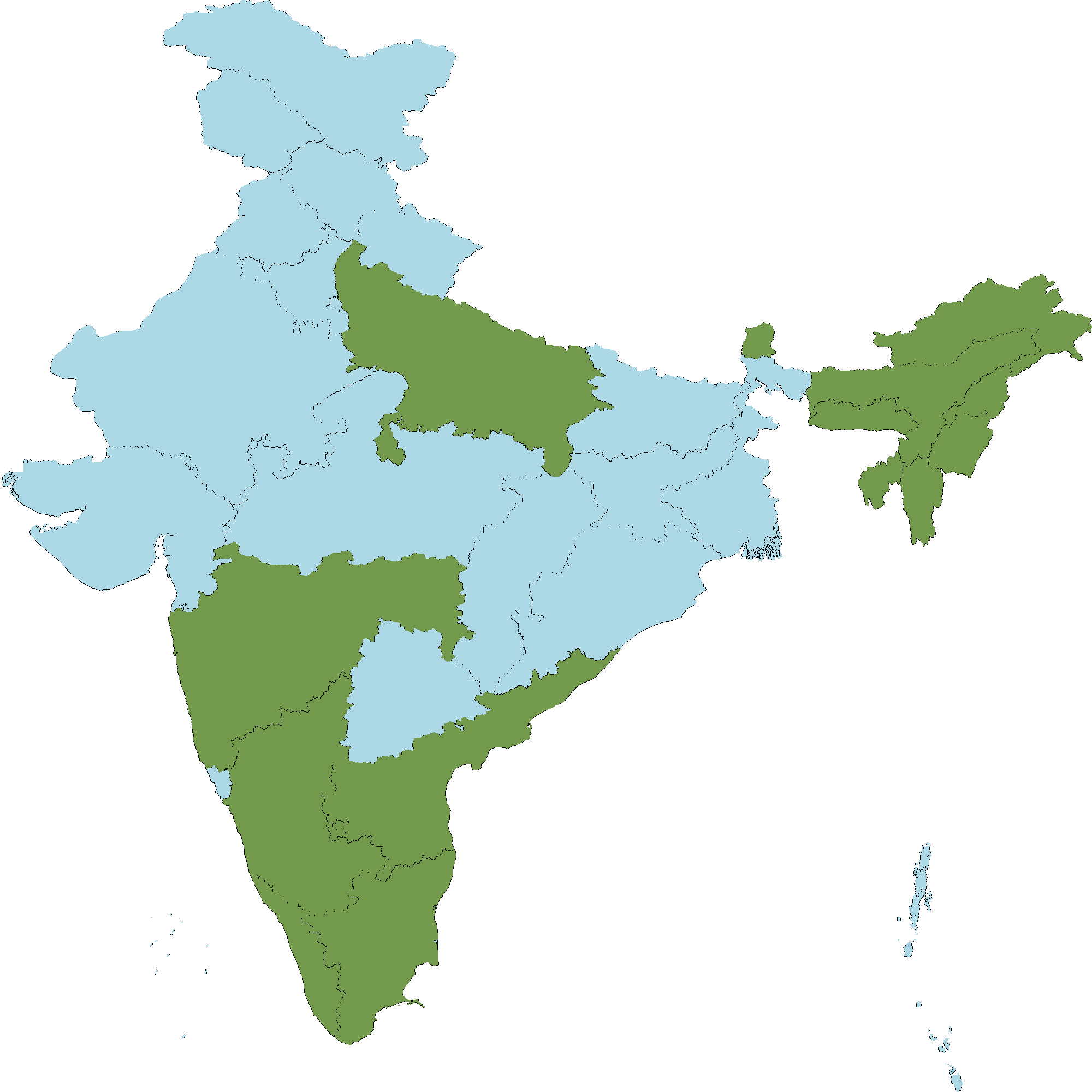 - Kerala : Malappuram district, Thrissur district, Idukki district, Alappuzha district, Kollam district, Thiruvananthapuram district
