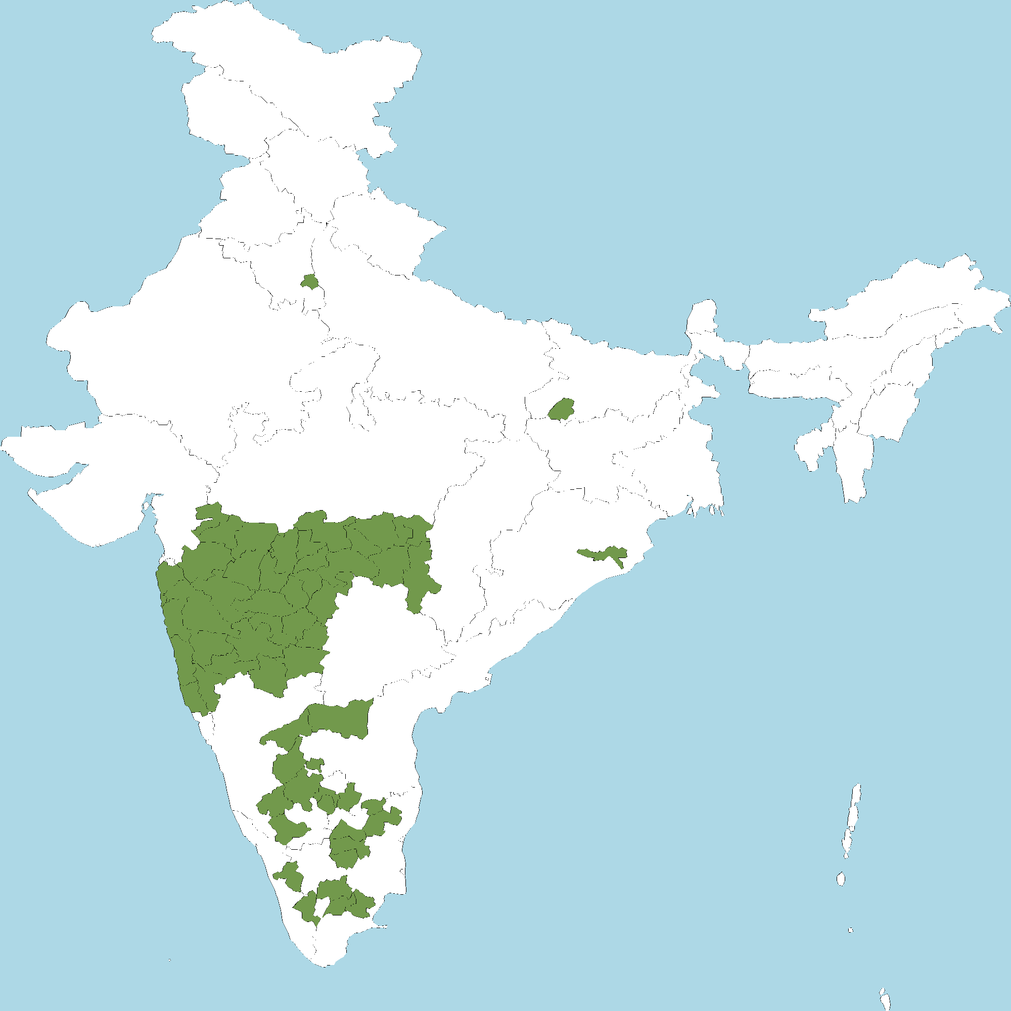 - Karnataka : Hassan district, Kalaburagi (Gulbarga) district, Mysuru district, Tumakuru district, Bengaluru Urban district, Bengaluru Rural district, Ballari district, Chitradurga district, Kolar district, Bidar district, Vijayapura (Bijapur) district