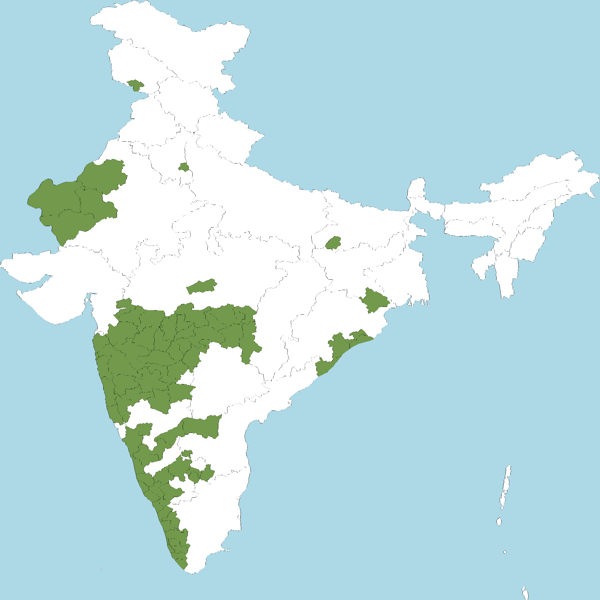 - Kerala : All districts of Kerala