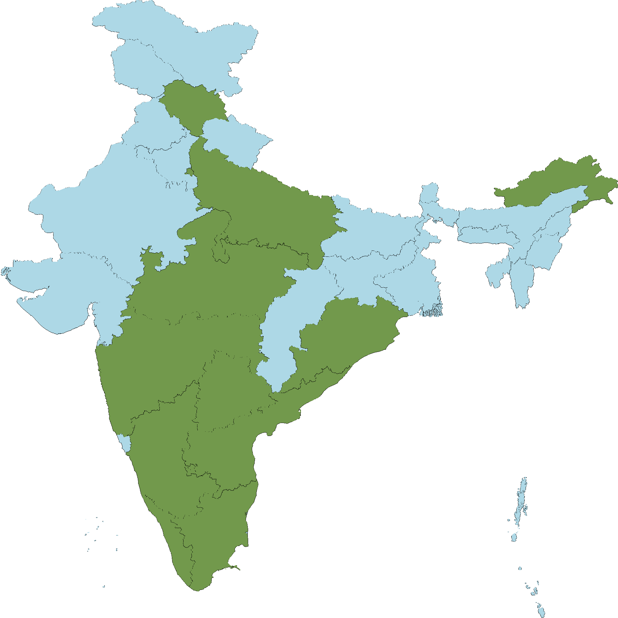 - Andhra Pradesh : Anantapur district, Chittoor district, Kadapa district, East Godavari district, Guntur district, Krishna district, Kurnool district, Nellore district, Prakasam district, Srikakulam district, Vishakapatnam district, Vizianagaram district, West Godavari district
