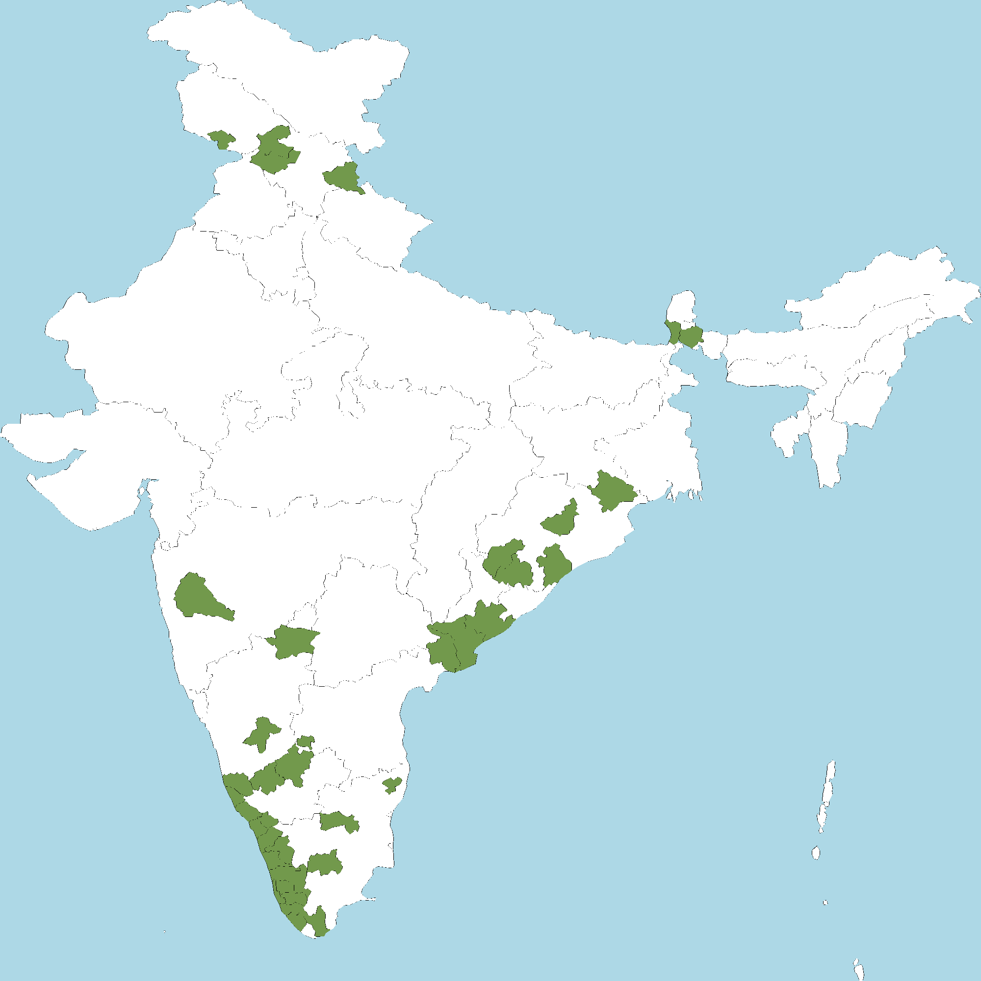 - Kerala : All districts of Kerala