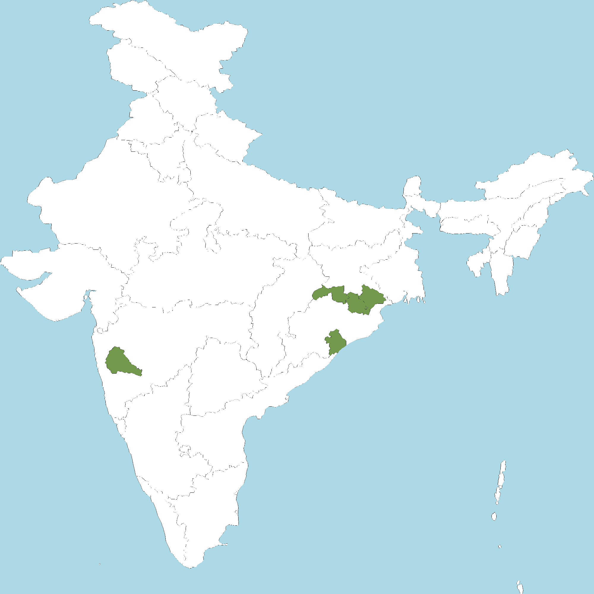 • Odisha : Mayurbhanj district, Kendujhar district, Sundargarh district, Ganjam district