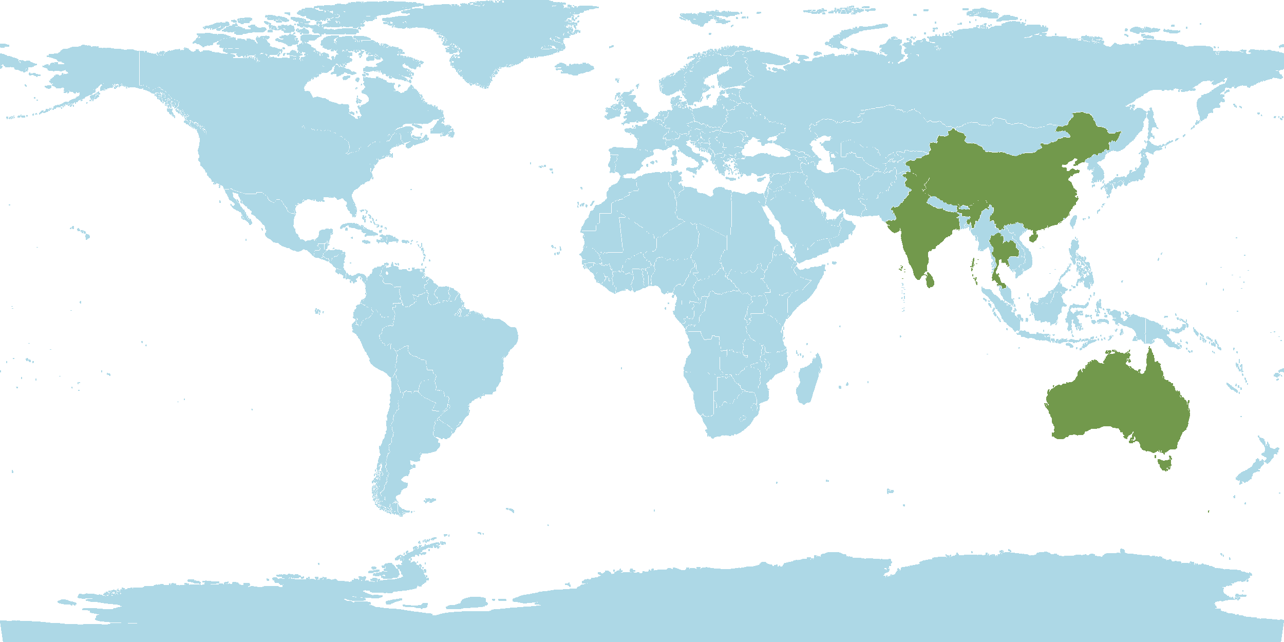 - World Distribution : India, Sri Lanka, Himalayas, Thailand, China, Malesia, Australia