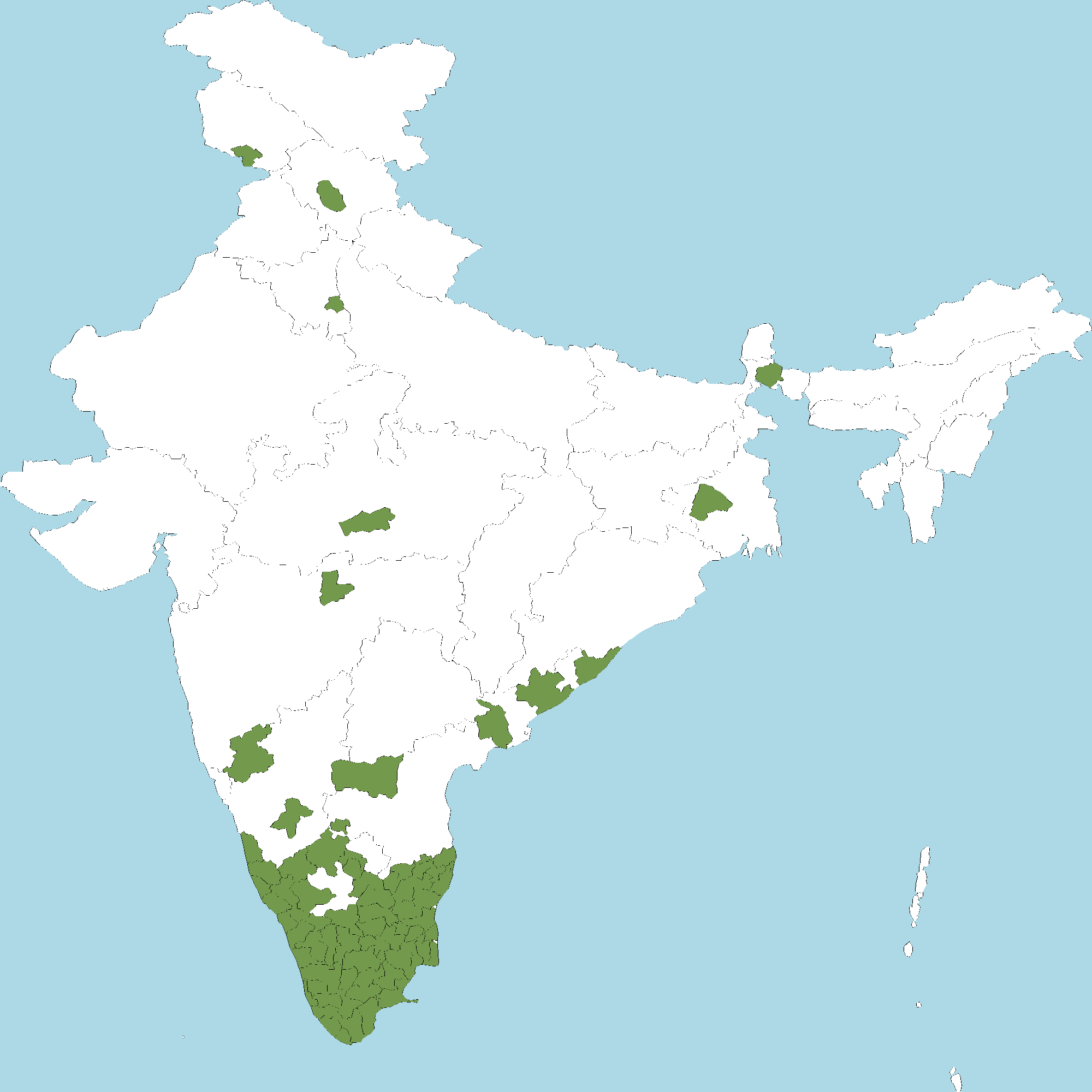 - Kerala : All districts of Kerala