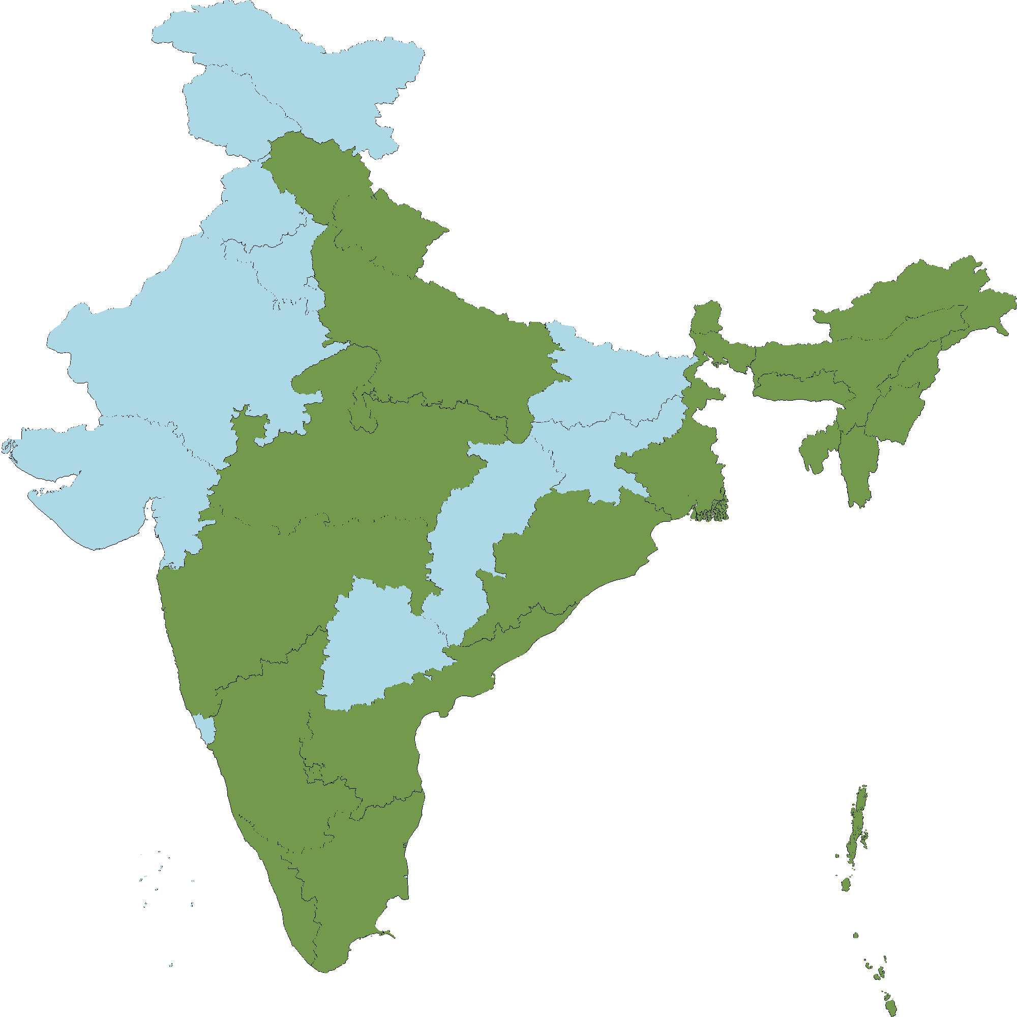 - Kerala : Kasaragod district, Kannur district, Wayanad district, Kozhikode district, Malappuram district, Palakkad district, Thrissur district, Idukki district, Pathanamthitta district, Kollam district, Thiruvananthapuram district