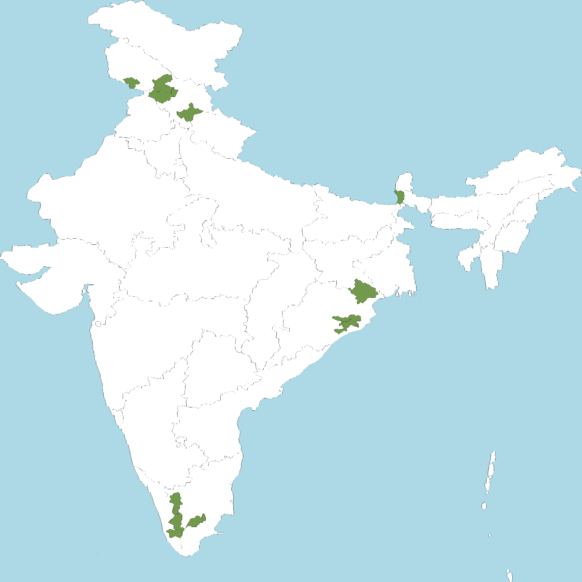 - Tamil Nadu : Coimbatore district, Madurai district, The Nilgiri district