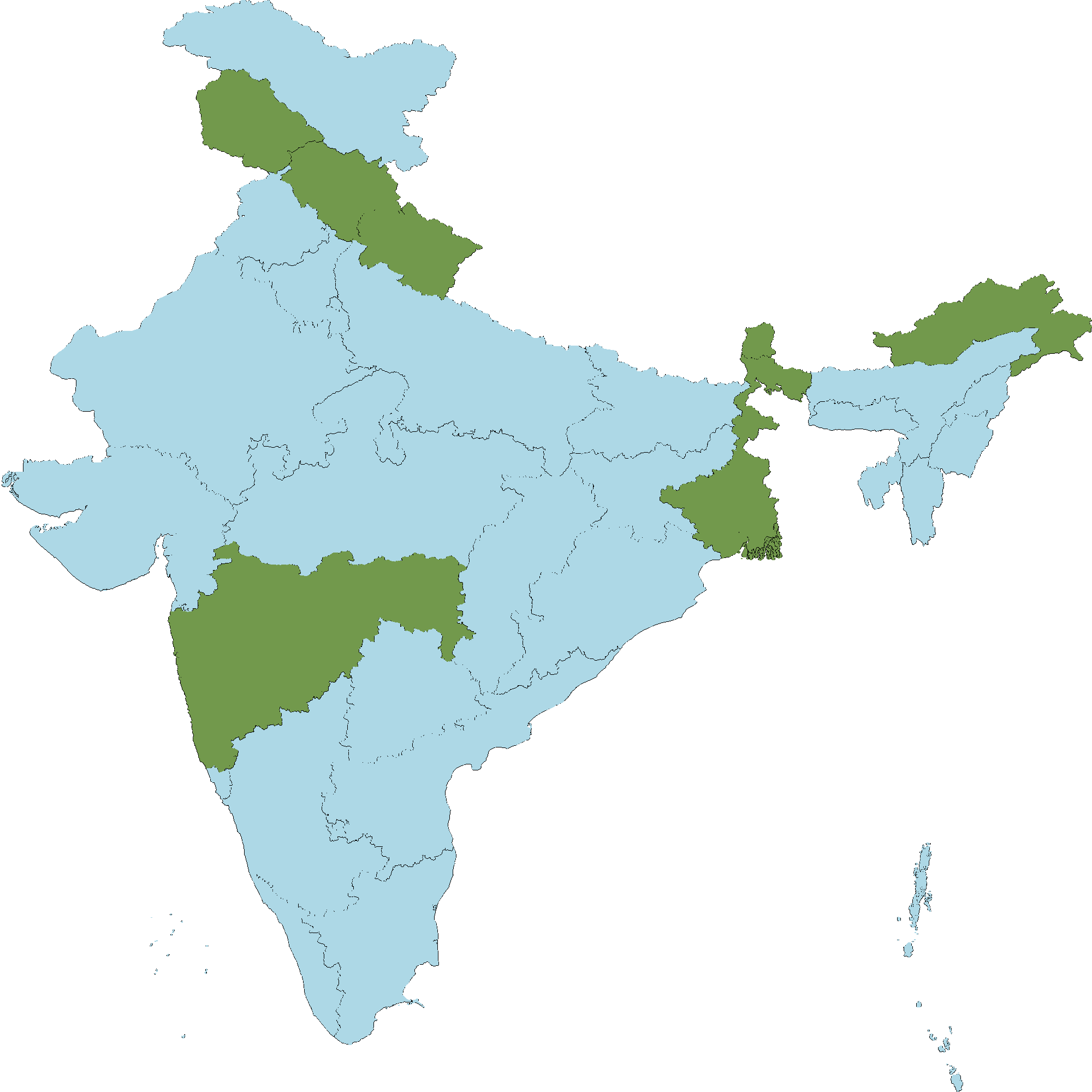 • Himachal Pradesh : Chamba district, Kangra district, Kinnaur district, Kullu district, Lahaul and Spiti district, Shimla district