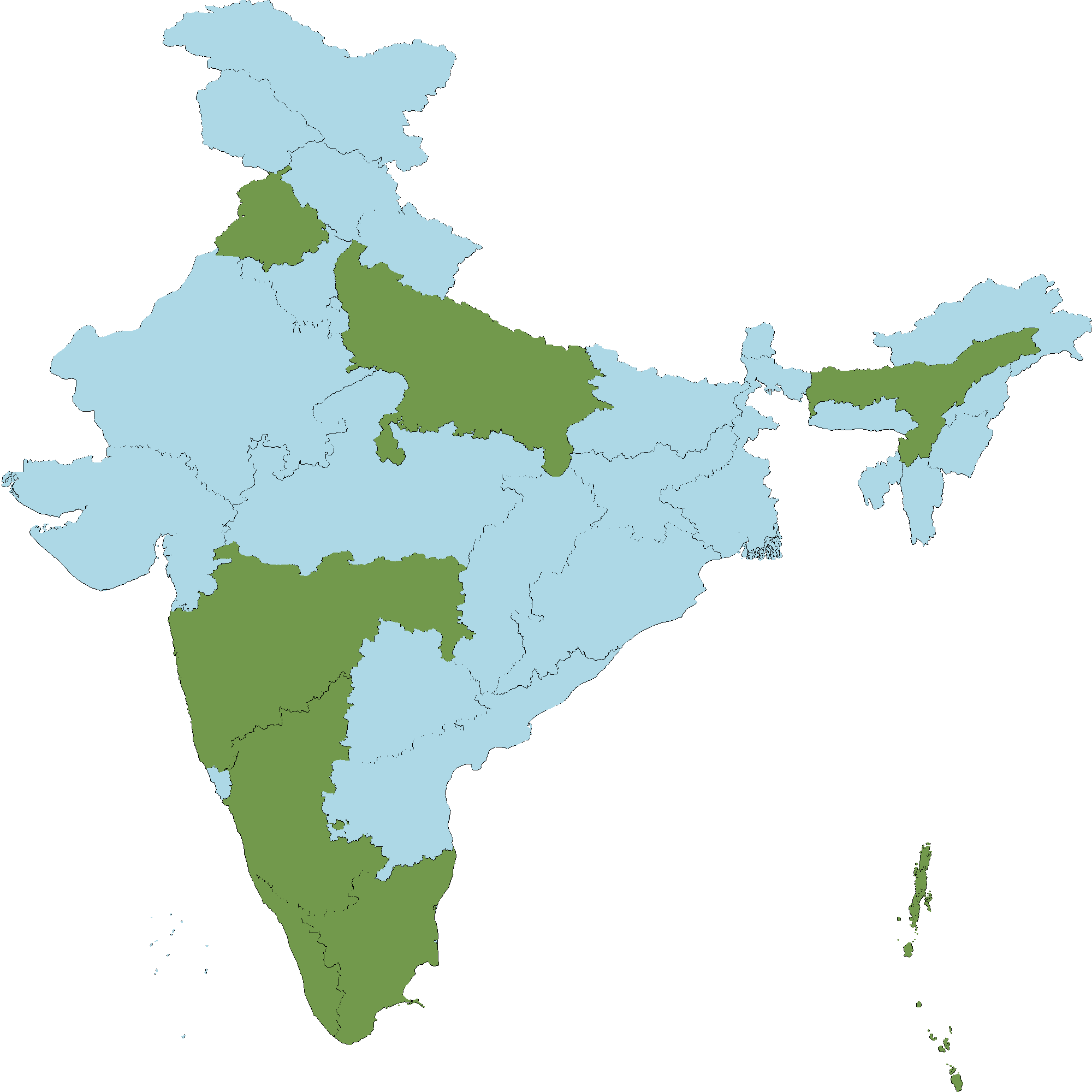 - Kerala : Kannur district, Wayanad district, Kozhikode district, Malappuram district, Palakkad district, Thrissur district, Idukki district, Pathanamthitta district, Kollam district, Thiruvananthapuram district