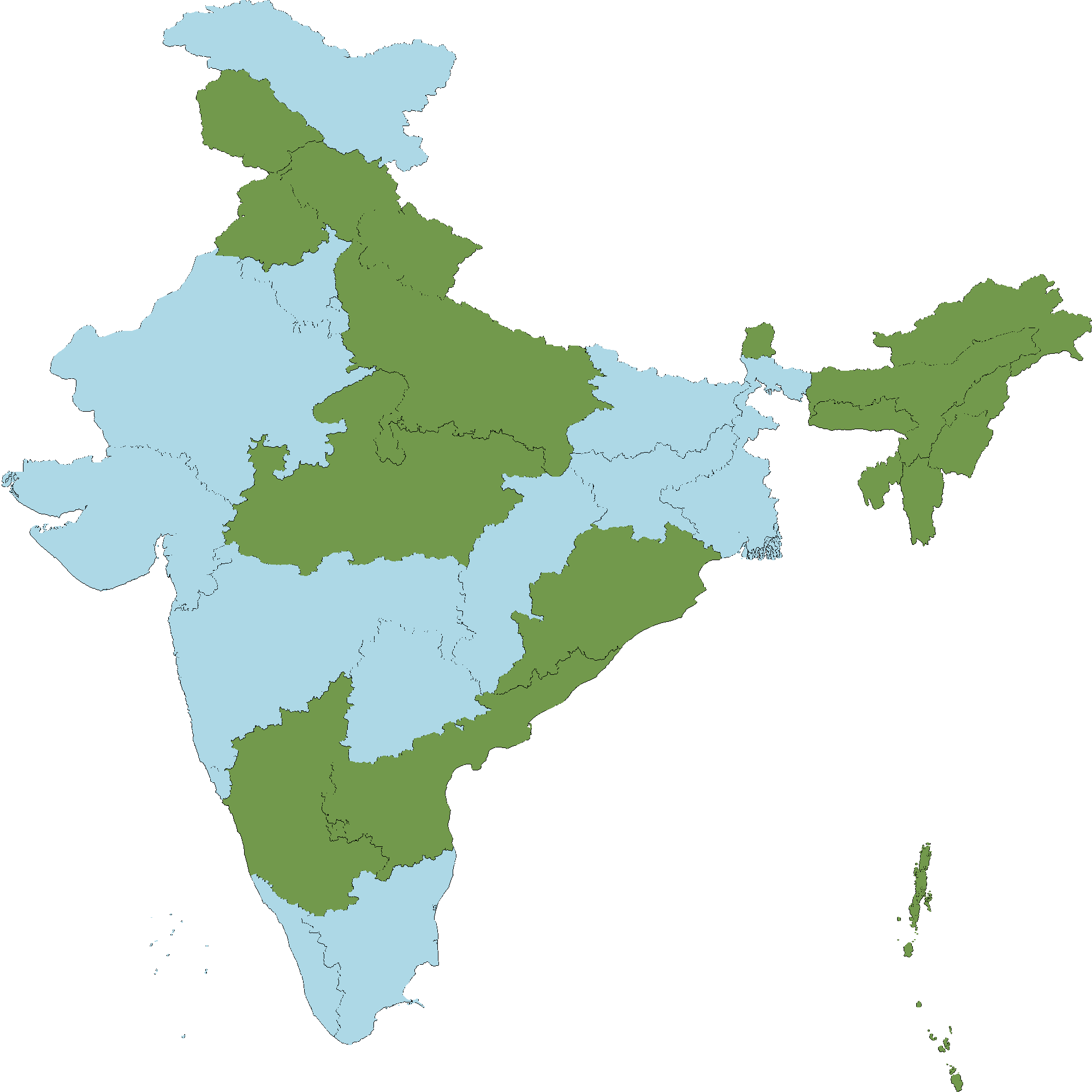 - Karnataka : Mysuru district, Davanagare district, Chamarajanagar district, Chikkamagaluru district, Kodagu (Coorg) district, Shivamogga district, Uttara Kannada district