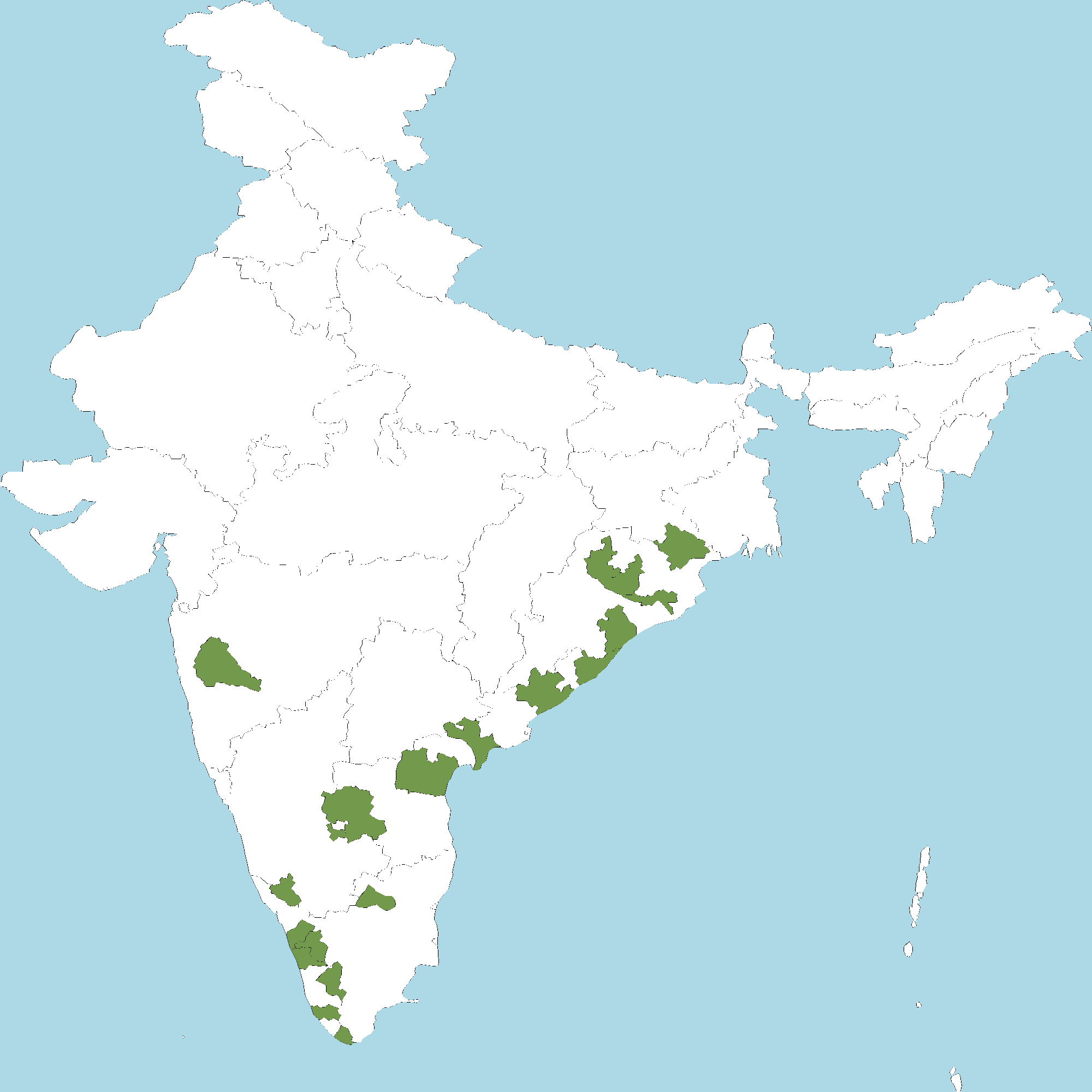 - Kerala : Malappuram district, Palakkad district, Thrissur district, Idukki district, Kollam district