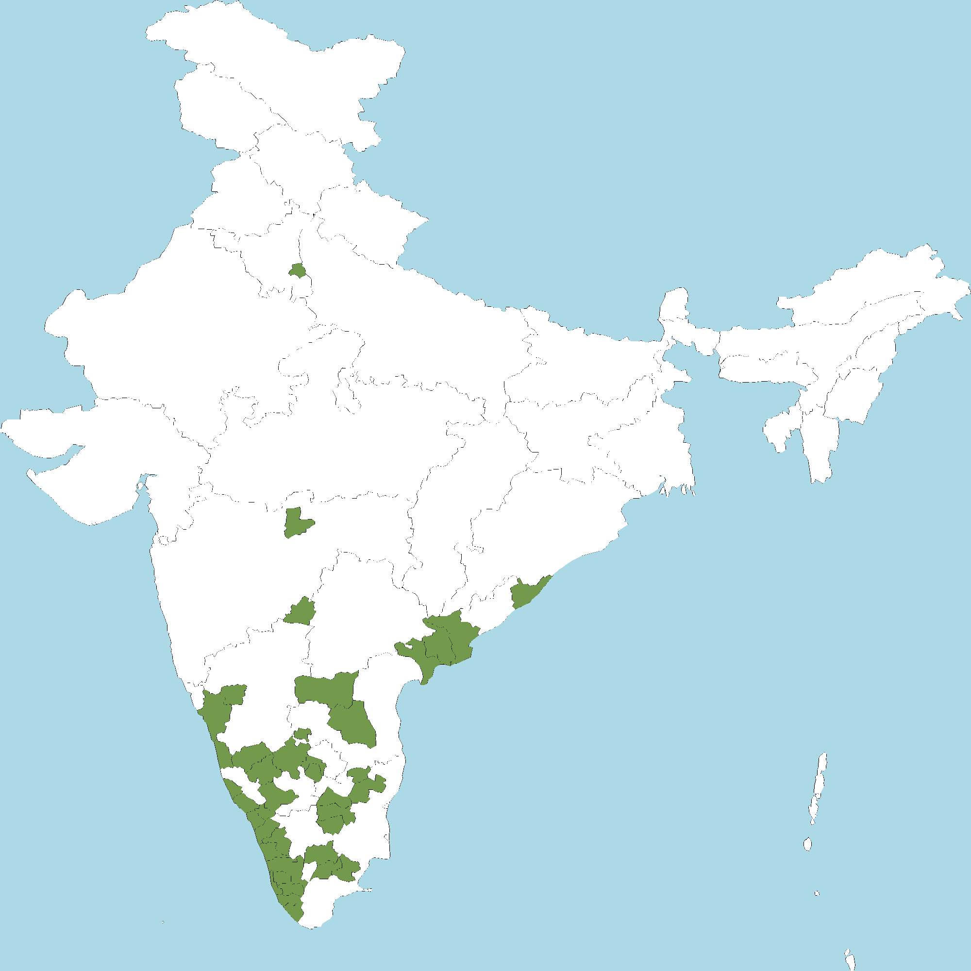 - Andhra Pradesh : Y.S.R. Kadapa district, West Godavari district, Y.S.R. Kadapa district, Krishna district, Kurnool district, East Godavari district, Srikakulam district