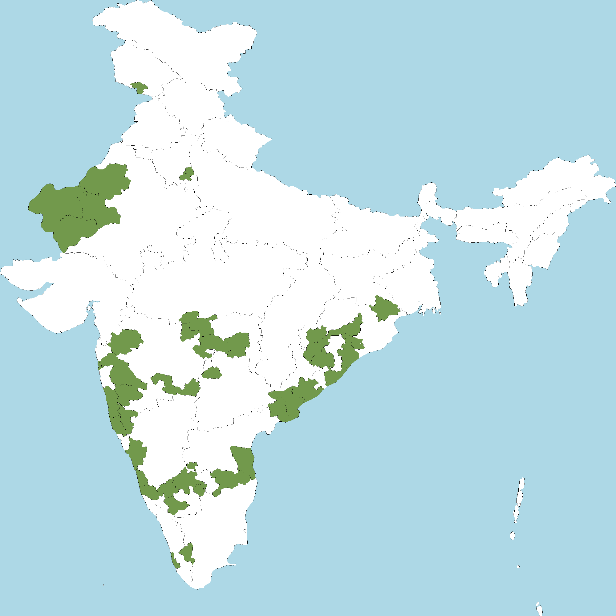 - Andhra Pradesh : Chittoor district, Visakhapatnam district, East Godavari district, Srikakulam district, West Godavari district, S.P.S. Nellore district